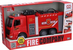 Această mașină de pompieri, realizată cu detalii atente, aduce copiilor multă acțiune: după umplerea rezervorului din interiorul cisternei, prin apăsarea butonului de pe rezervor se poate pulveriza apă în mod real. Butoanele de pe cabină activează efectele luminoase și sonore, intensificând experiența de joc și stimulând imaginația micilor salvatori.