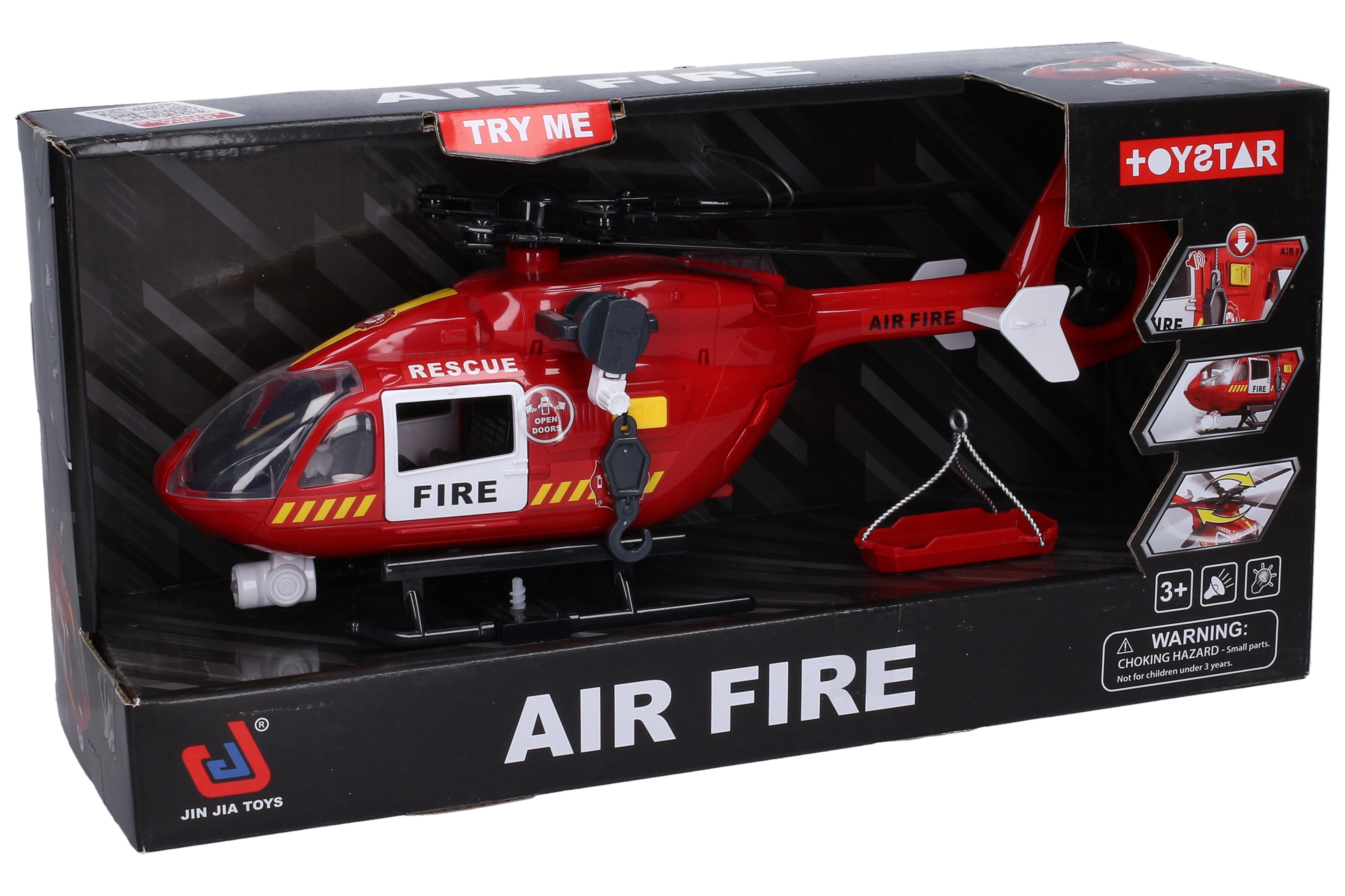 Elicopter de pompieri realist cu lungimea de 38 cm, gata să ofere ore întregi de distracție plină de acțiune. Oferă efecte luminoase și sonore, uși frontale și din spate deschise, cablu extensibil cu cârlig și targă de salvare. Bateriile 2× AAA sunt incluse, iar totul se controlează ușor printr-un buton pe lateralul elicopterului.