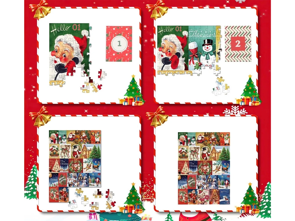Deschideți zilnic, între 1–24 decembrie, câte o cutiuță cu 42 de piese și asamblați imagini unice cu tematică de Crăciun în stil vintage. Ritual de Advent ideal pentru copii și adulți.