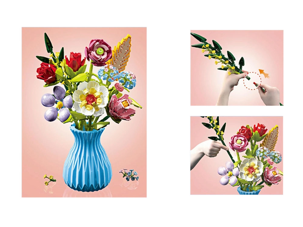Construiește o colecție variată de flori și aranjeaz-o în vaza inclusă. Fiecare floare are propriul ghid vizual pentru o asamblare confortabilă.