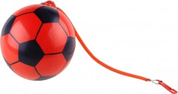 Minge roșie din cauciuc, cu diametrul de 22 cm și model de fotbal, ideală pentru jocuri acasă și în aer liber. Fabricată din cauciuc durabil și elastic, care ricoșează excelent și rezistă distracției zilnice. Practicul suport pentru atașarea unui șnur elastic facilitează transportul, antrenamentele de îndemânare și jocurile fără ca mingea să se rostogolească departe. Datorită construcției ușoare și culorii roșii intense, mingea este bine vizibilă și potrivită pentru copii de la 3 ani în sus.