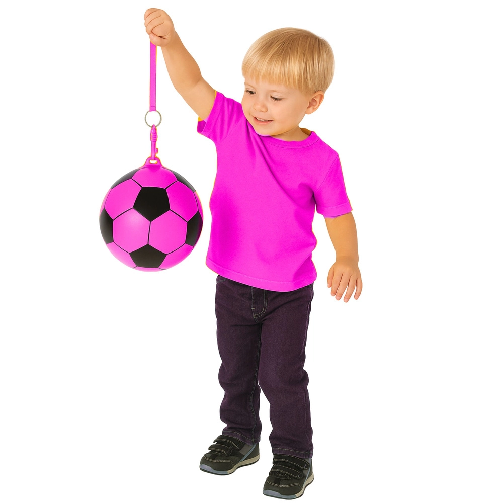 Mânerul practic permite atașarea unei sfori sau a unui carabinier – potrivită pentru jocuri de precizie, antrenarea reflexelor și șuturi sigure fără a alerga mereu după minge. Ideală pentru copii de la 3 ani.