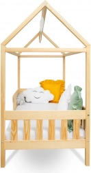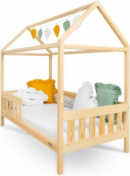 Patul-căsuță New Baby Castello aduce în camera copiilor o atmosferă primitoare și stimulează imaginația și jocul creativ. Acoperișul deschis invită la decorare cu luminițe sau baldachin textil, în timp ce construcția solidă din pin și finisarea netedă asigură durabilitate și utilizare în siguranță.