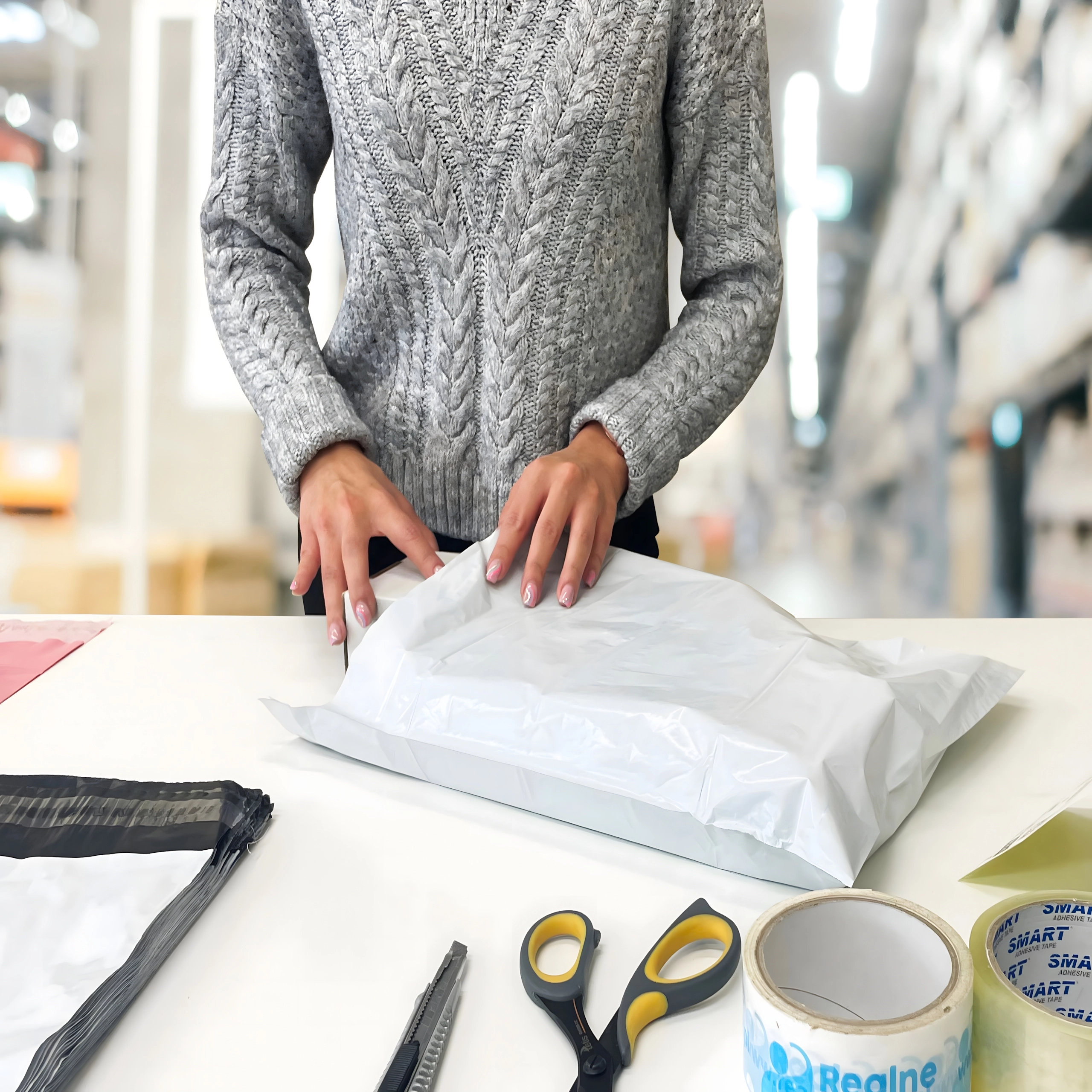 Aceste plicuri albe de curierat (poly mailer) accelerează procesul de ambalare datorită închiderii rapide peel‑and‑seal. Protejează textilele, accesoriile și alte produse mai moi, iar nu permit vizualizarea conținutului datorită stratului interior negru. Construcția ușoară reduce costul poștal, oferind în același timp rezistență suficientă la rupere și umiditate.