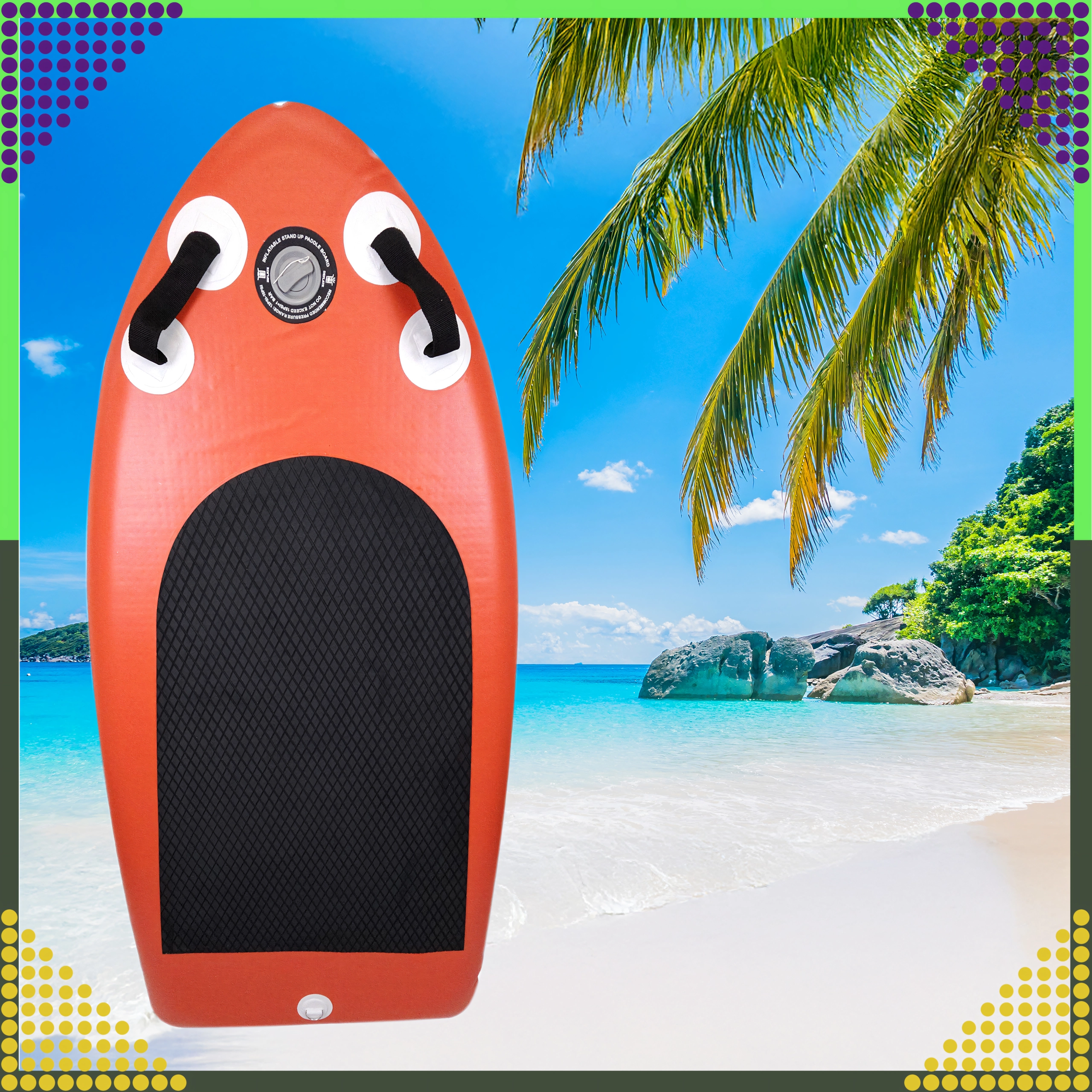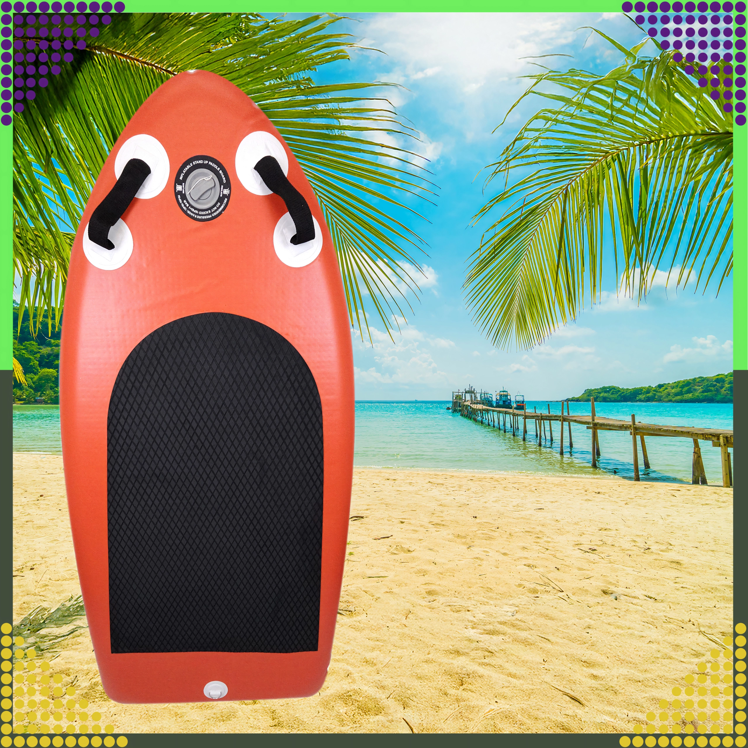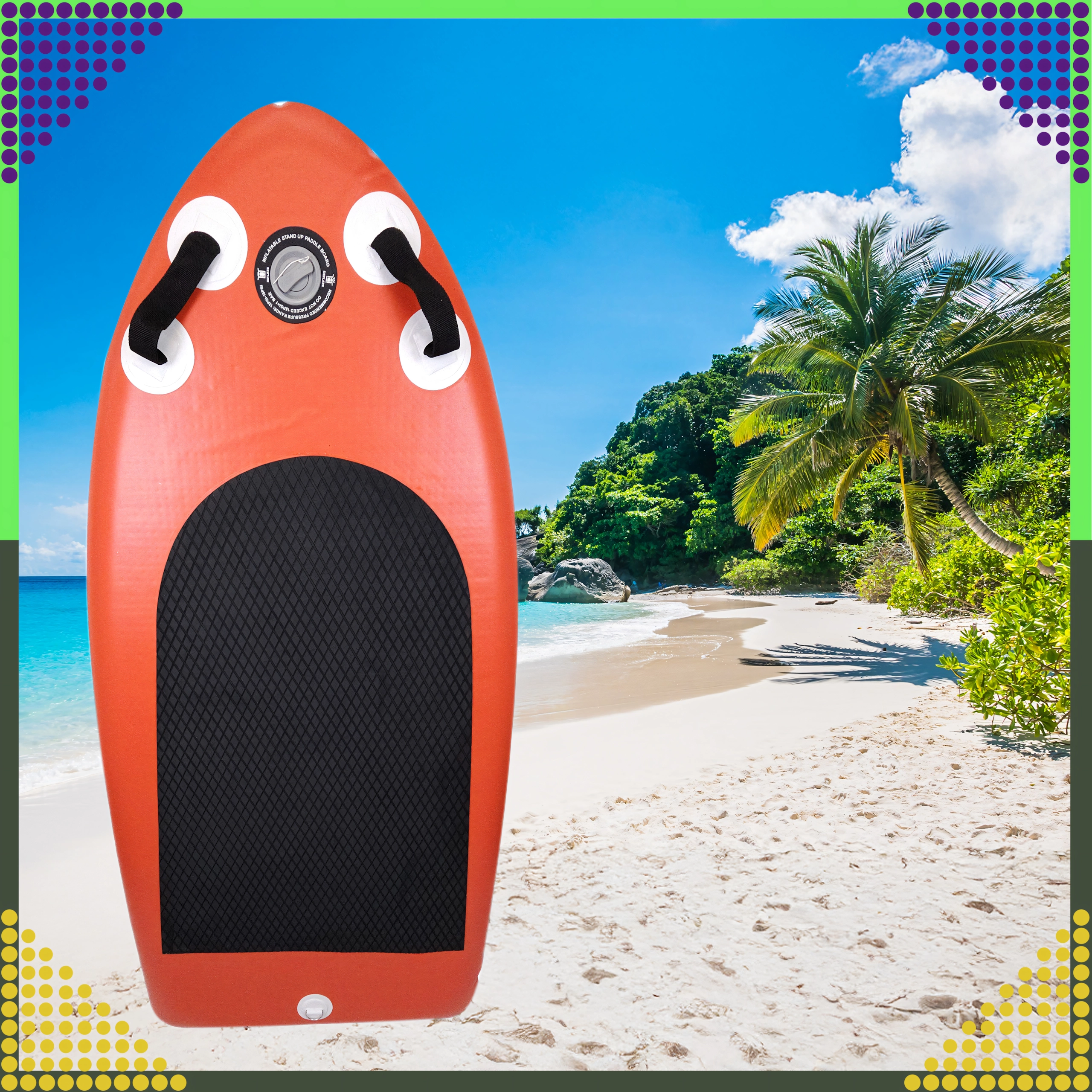 Suprapunerea texturată din EVA asigură aderență sigură chiar și udă. Mânerele frontale facilitează manipularea pe mal și în apă.