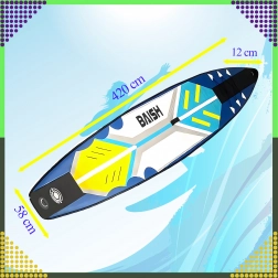 Descoperă libertatea pe apă cu paddleboardul gonflabil cu dimensiunile 420 × 58 × 12 cm, care oferă stabilitate ridicată, manevrabilitate ușoară și suprafață confortabilă antiderapantă din EVA. Datorită construcției compozite rezistente cu PVC întărit cu fibră de sticlă, ventilului de înaltă presiune și greutății reduse, este ideal pentru ture lungi și vâslit recreațional. Pachetul include accesorii practice pentru o utilizare comodă.