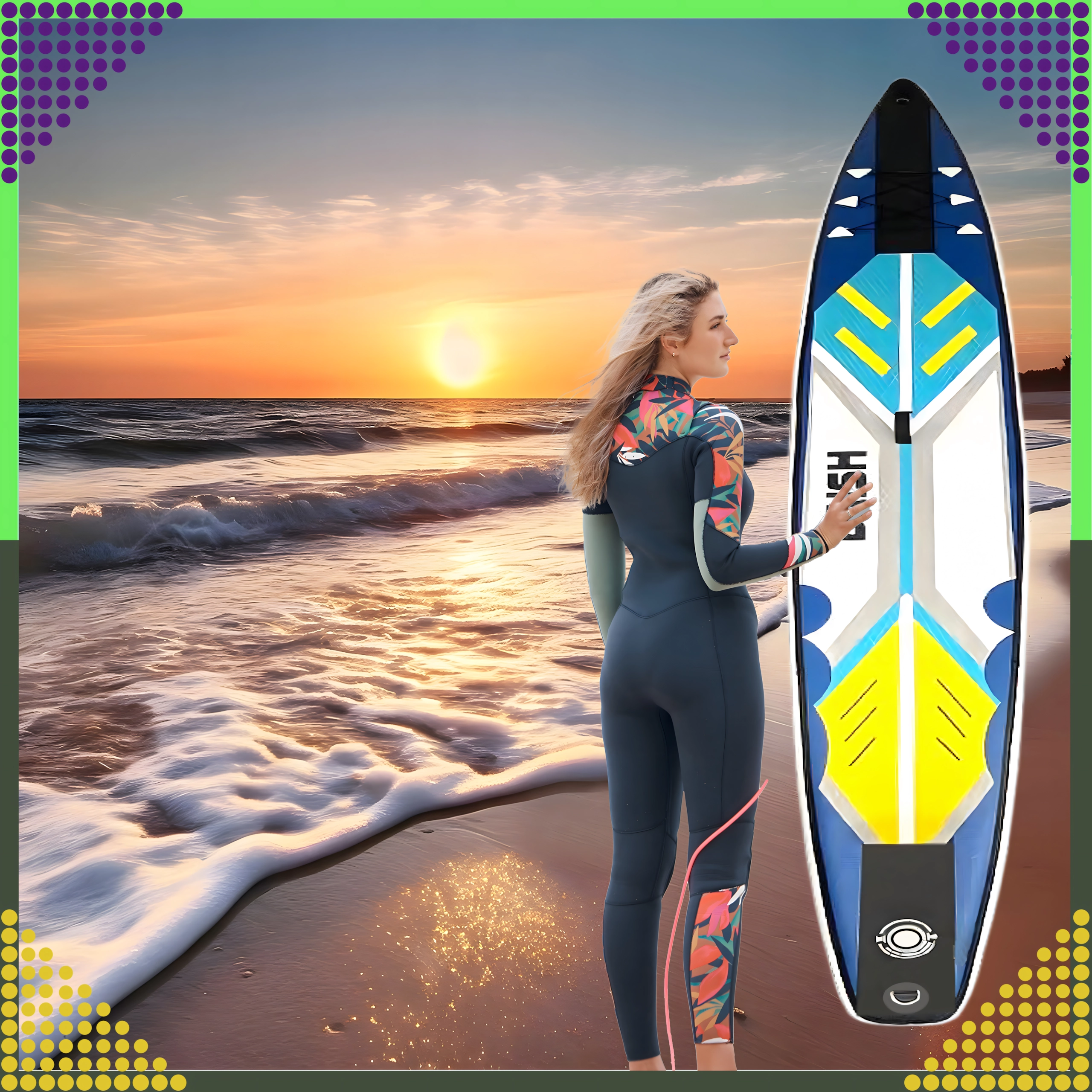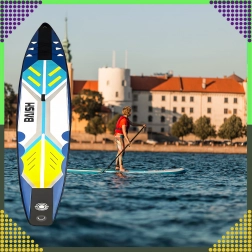 Acest SUP universal este conceput atât pentru începători, cât și pentru utilizatori avansați. Silueta lungă și îngustă (420 × 58 × 12 cm) asigură alunecare eficientă, stabilitate și viteză pe ape liniștite și trasee mai lungi. Spuma EVA antiderapantă cu structură tip diamant sporește siguranța poziției și confortul chiar și în timpul curselor lungi.