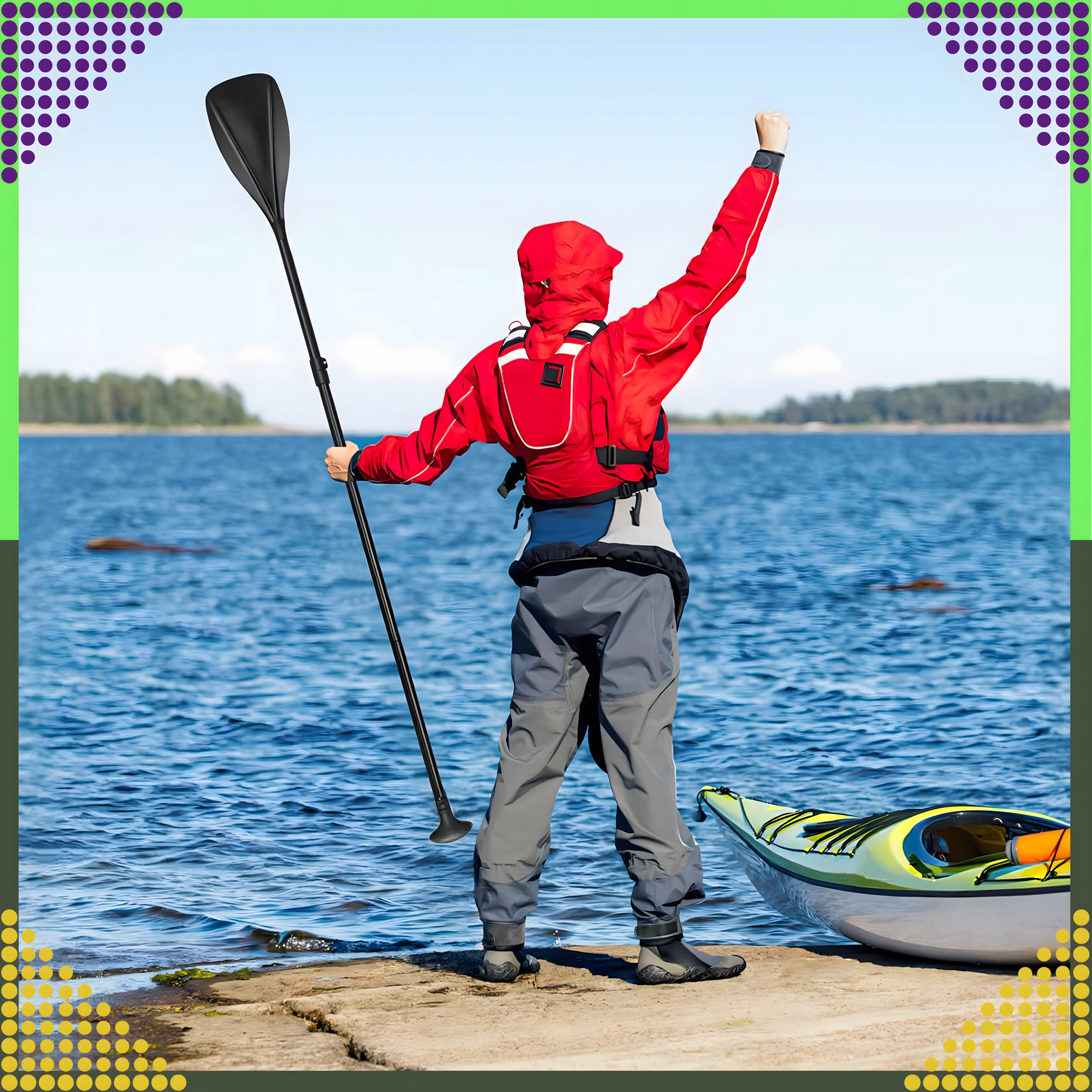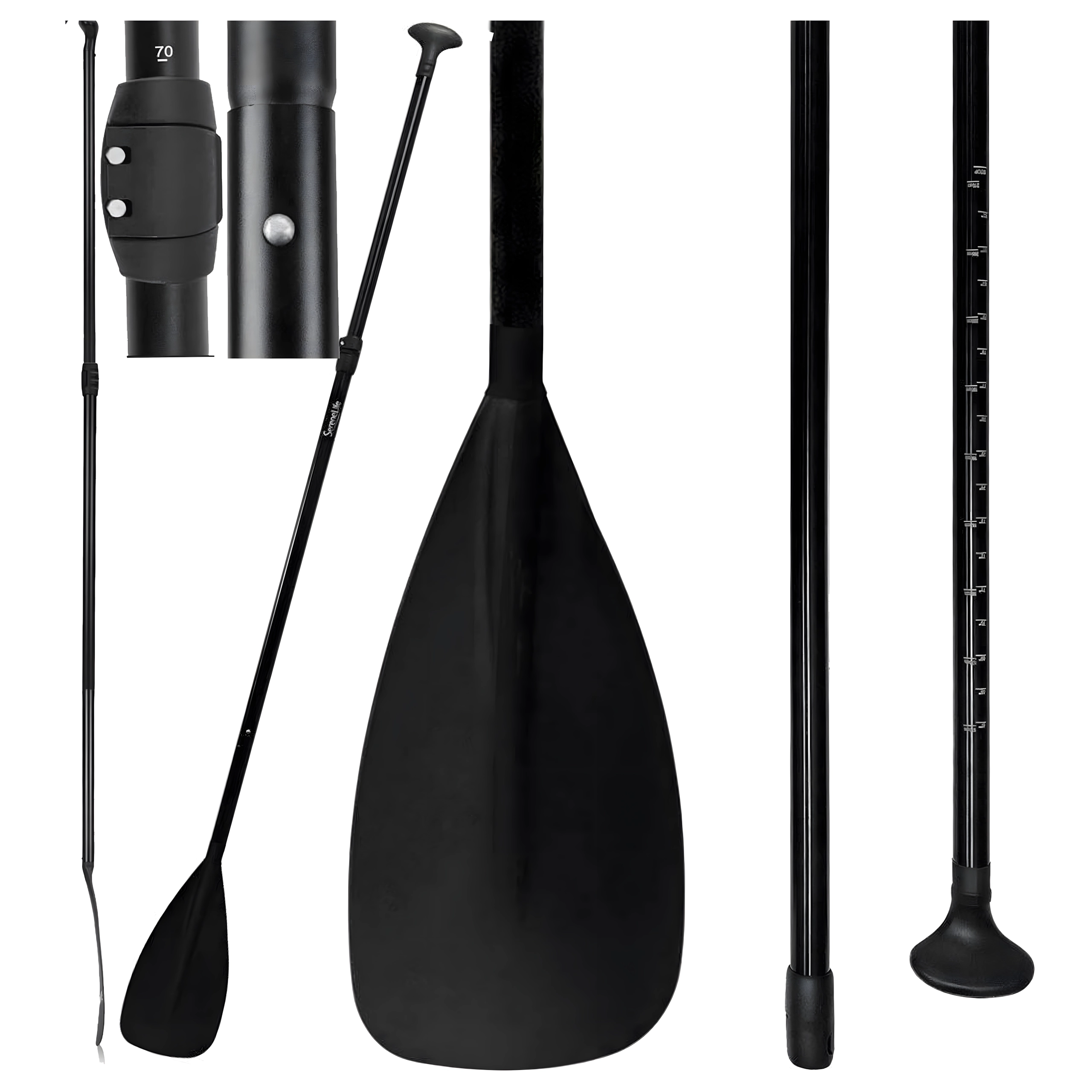Descoperiți pagaia practică 2 în 1, ideală atât pentru SUP, cât și pentru caiac. Corpul din aluminiu ușor și rigid, pala rezistentă din nylon și clema cu eliberare rapidă permit reglarea fluentă a lungimii și un control confortabil pe apă.