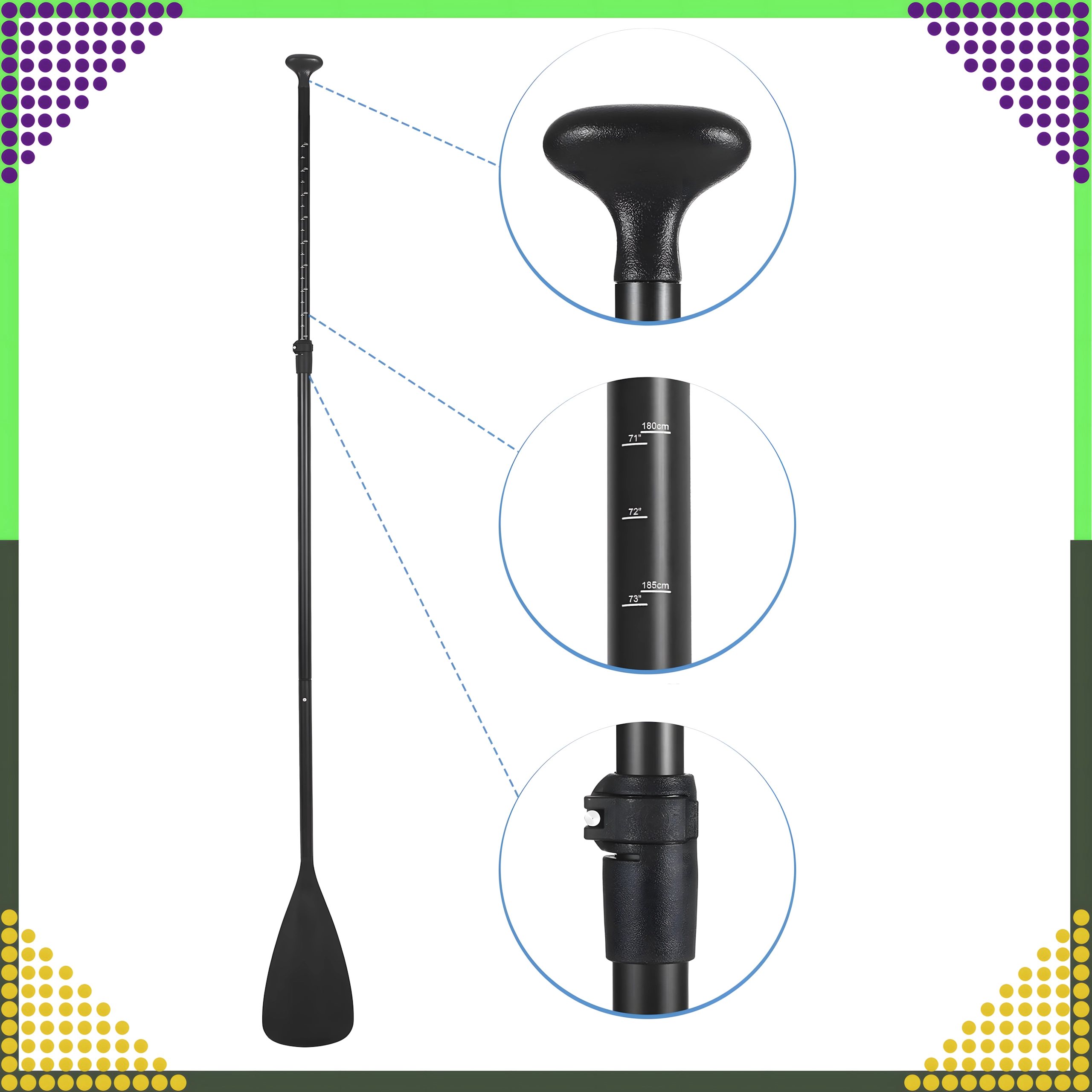 Axul din aluminiu solid și pala ergonomică din nailon asigură o prindere eficientă în apă și durabilitate îndelungată. Reglarea rapidă a lungimii și mânerul tip T‑bar garantează prindere confortabilă și control asupra plăcii sau caiacului. Potrivită pentru copii mai mari, adolescenți și adulți.
