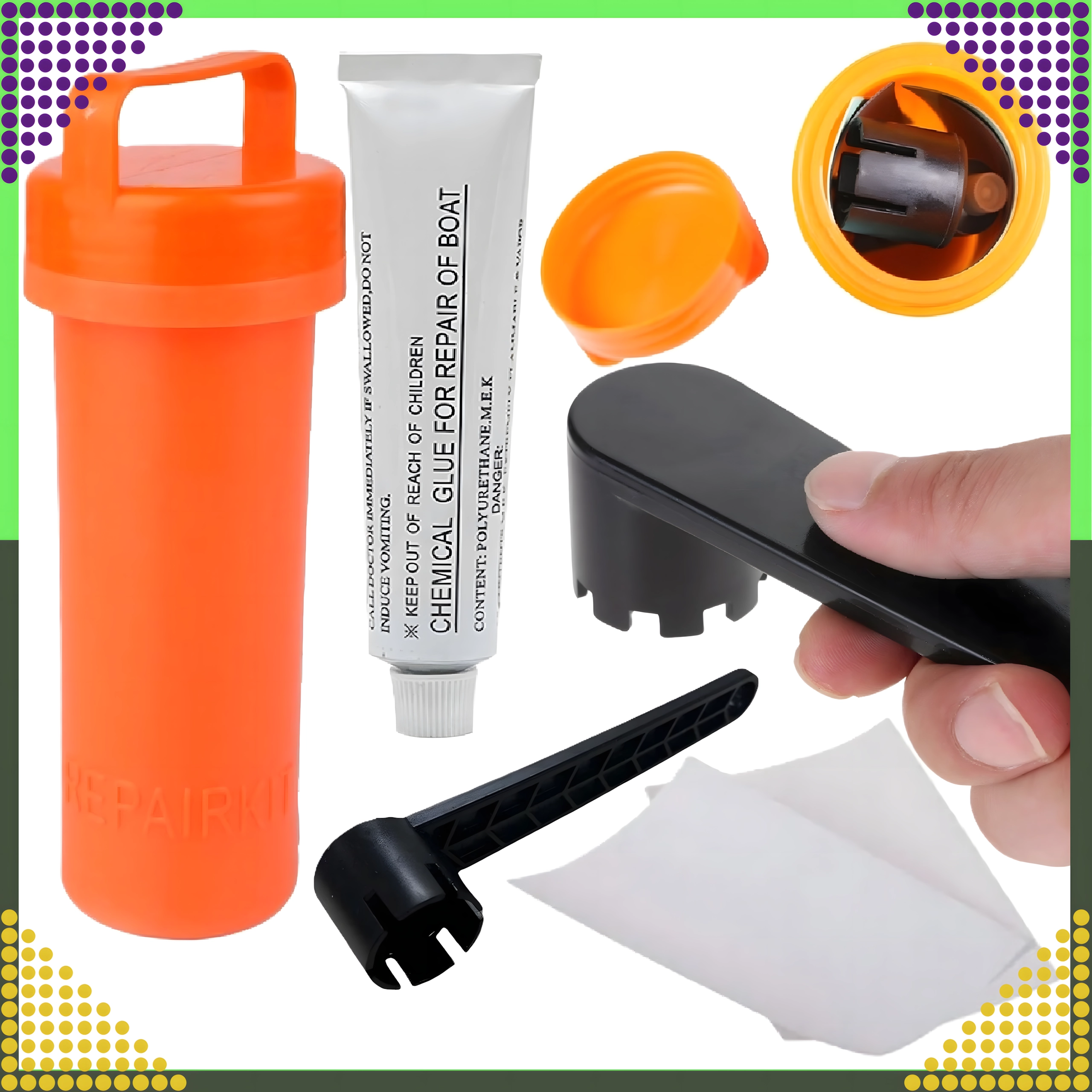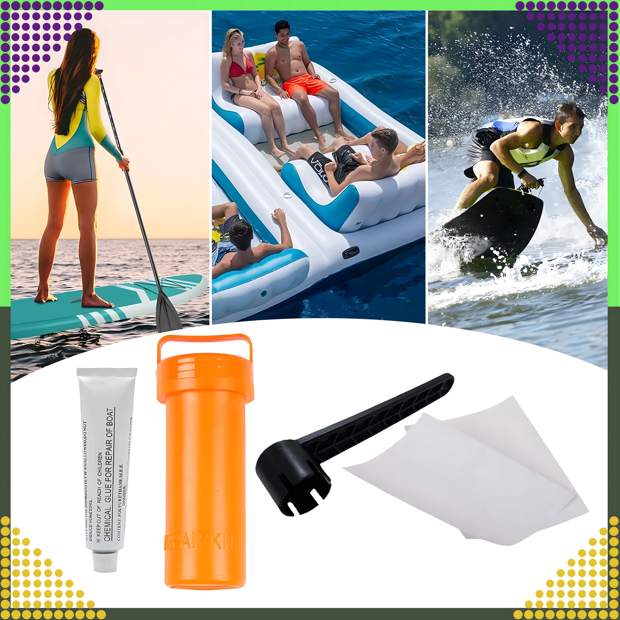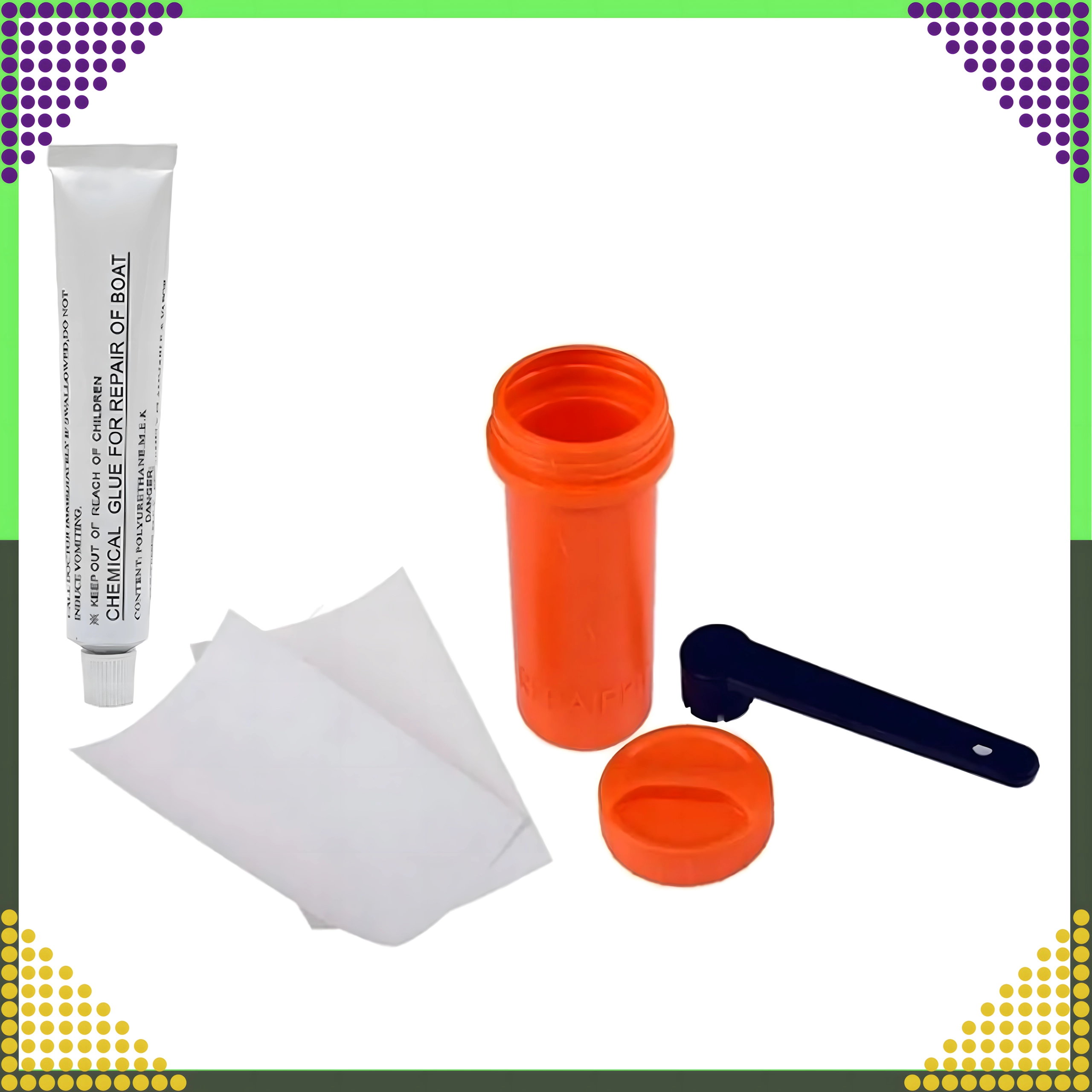 Include adeziv chimic și plăci de peticire pentru o lipire fermă și durabilă pe PVC și suprafețe gonflabile. Ideal pentru paddleboard-uri, rafturi, saltele și alte echipamente gonflabile.