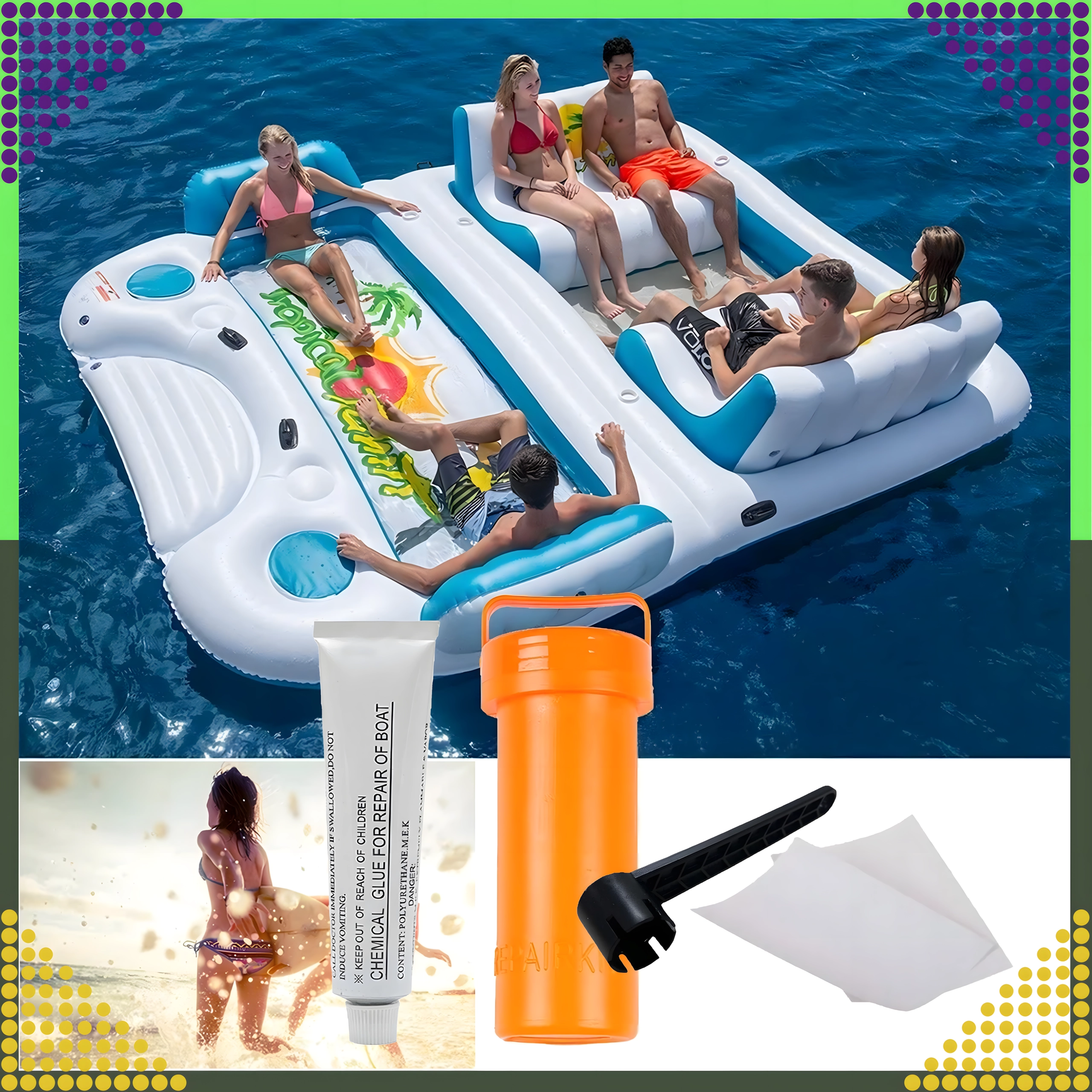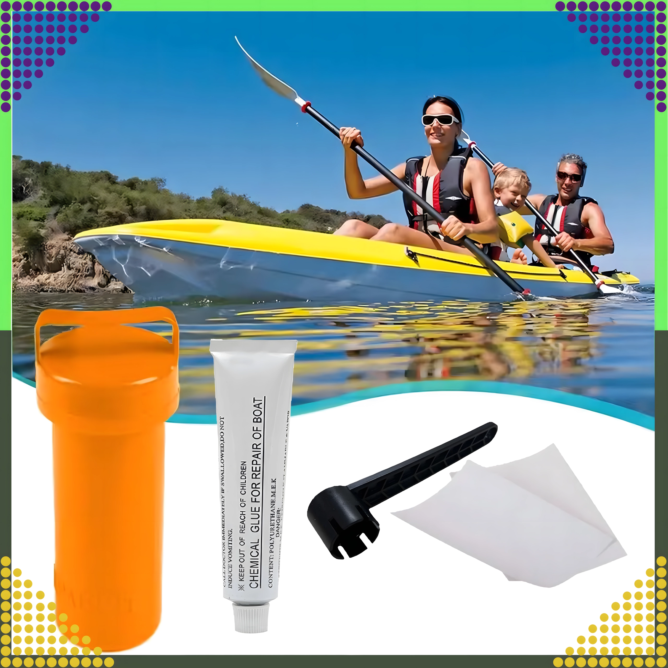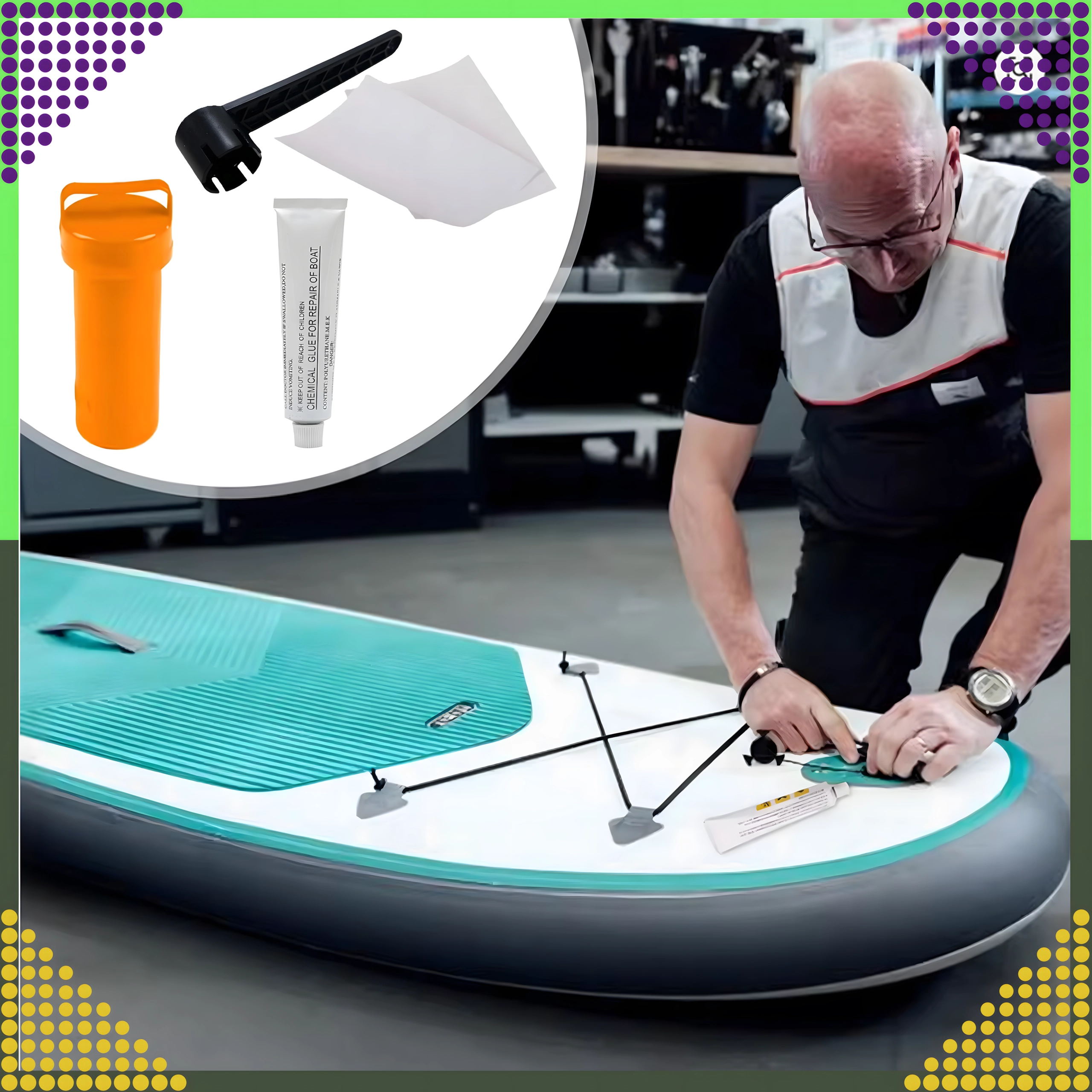 Include adeziv chimic și plăci de peticire pentru o lipire fermă și durabilă pe PVC și suprafețe gonflabile. Ideal pentru paddleboard-uri, rafturi, saltele și alte echipamente gonflabile.