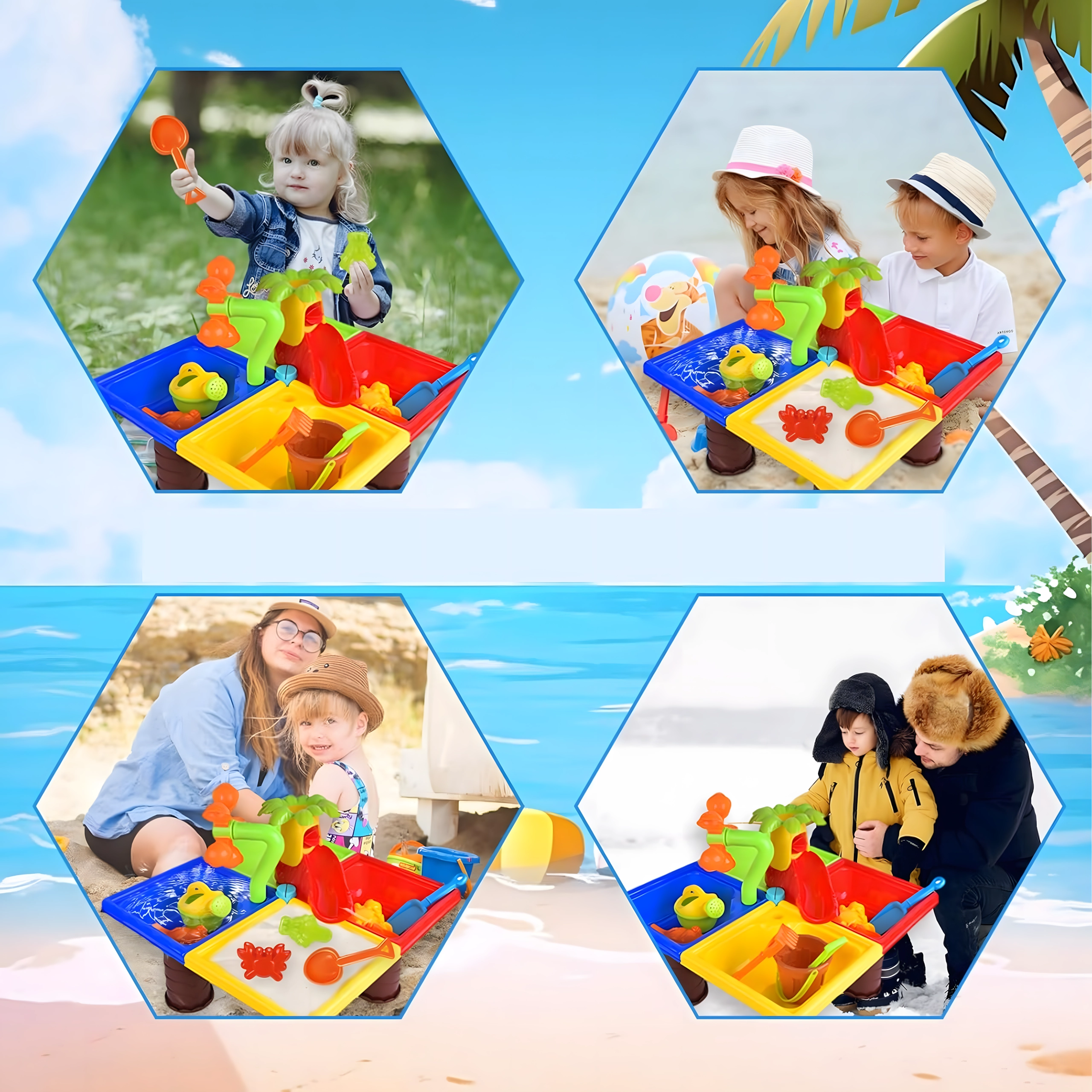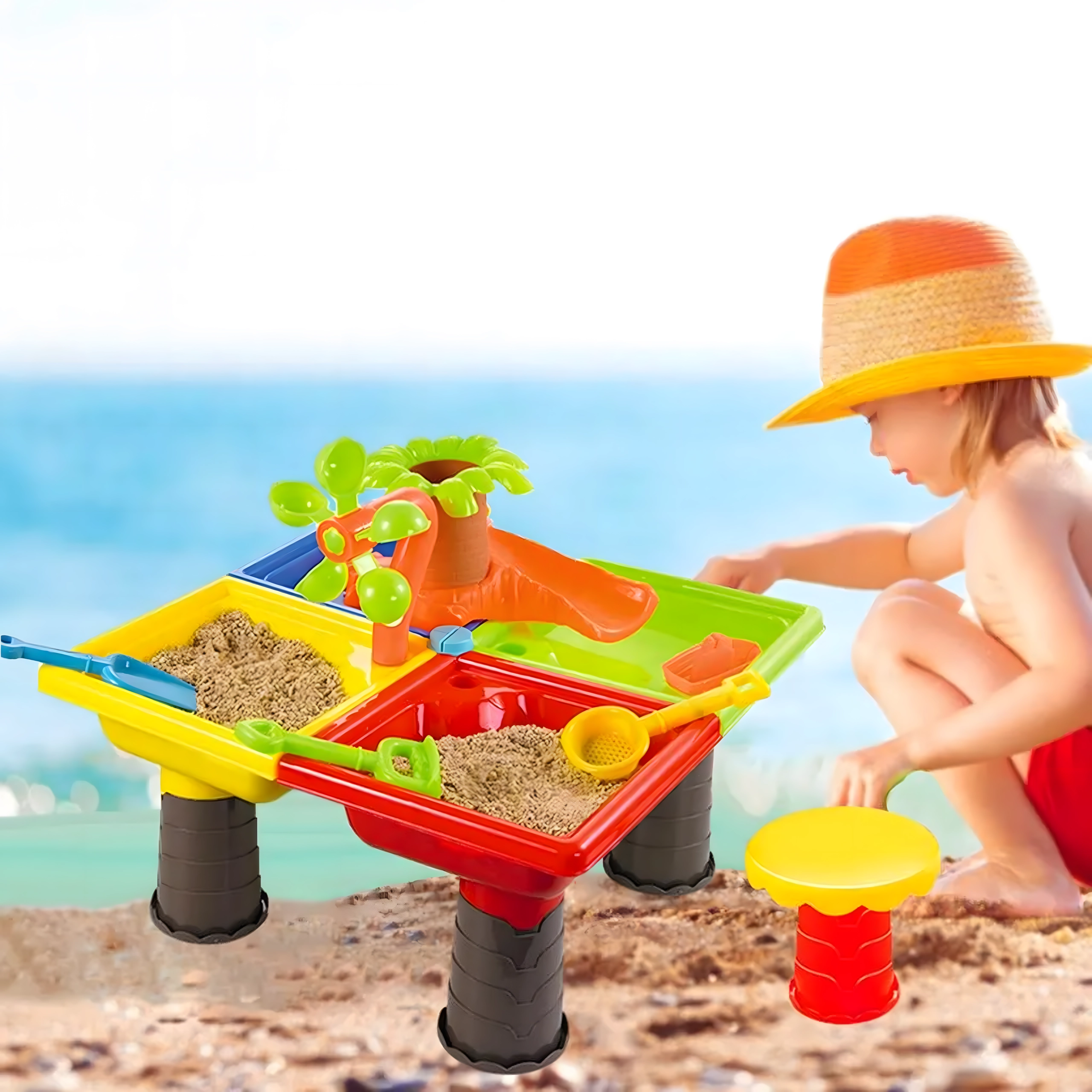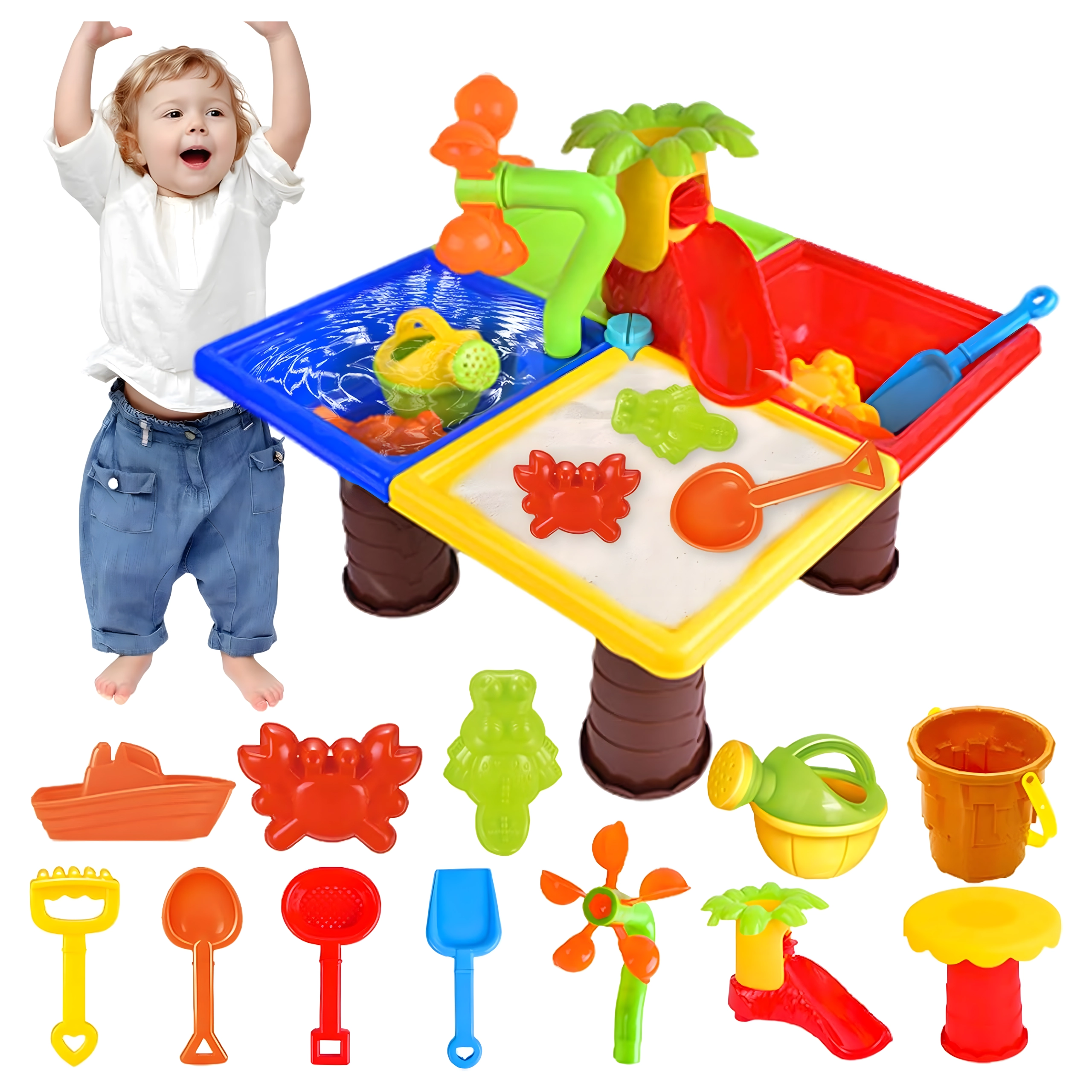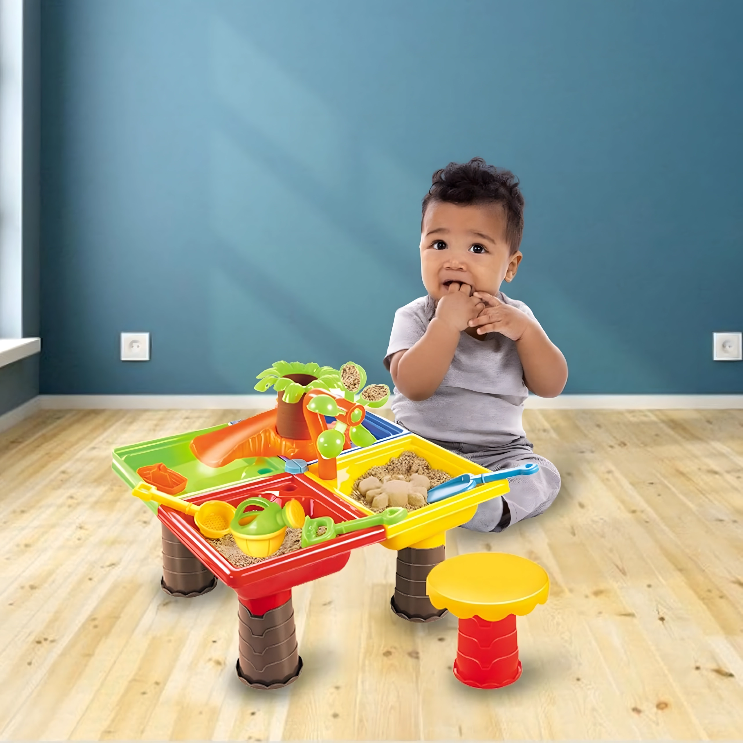- Apă și nisip 2‑în‑1 – ideal pentru dezvoltare senzorială și creație creativă.