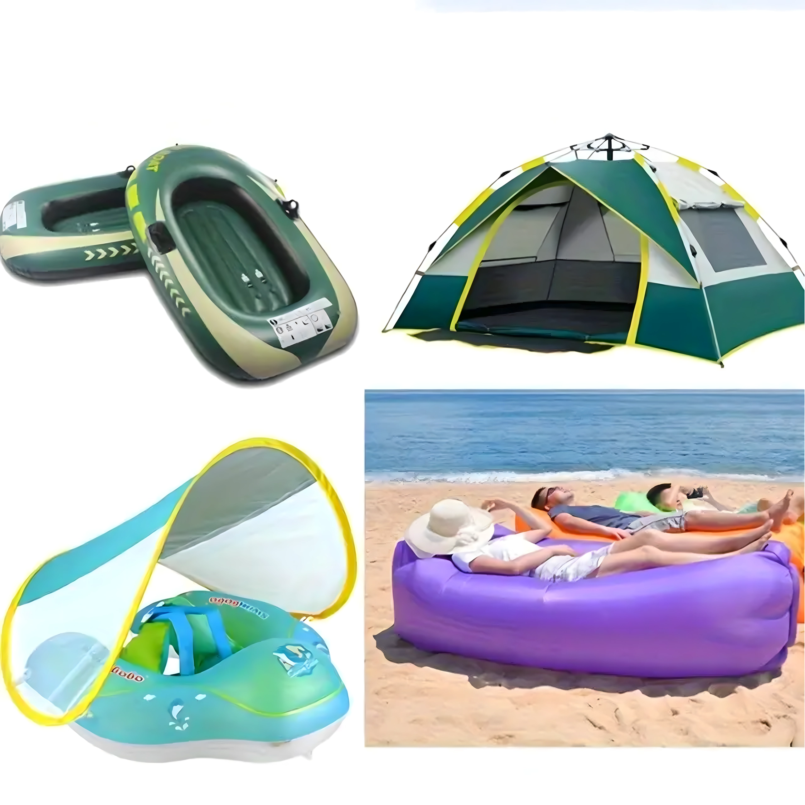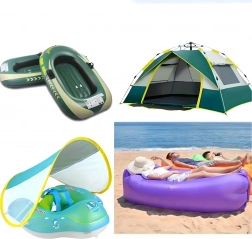 - Saltele gonflabile, piscine, jucării gonflabile, bărci, echipamente outdoor