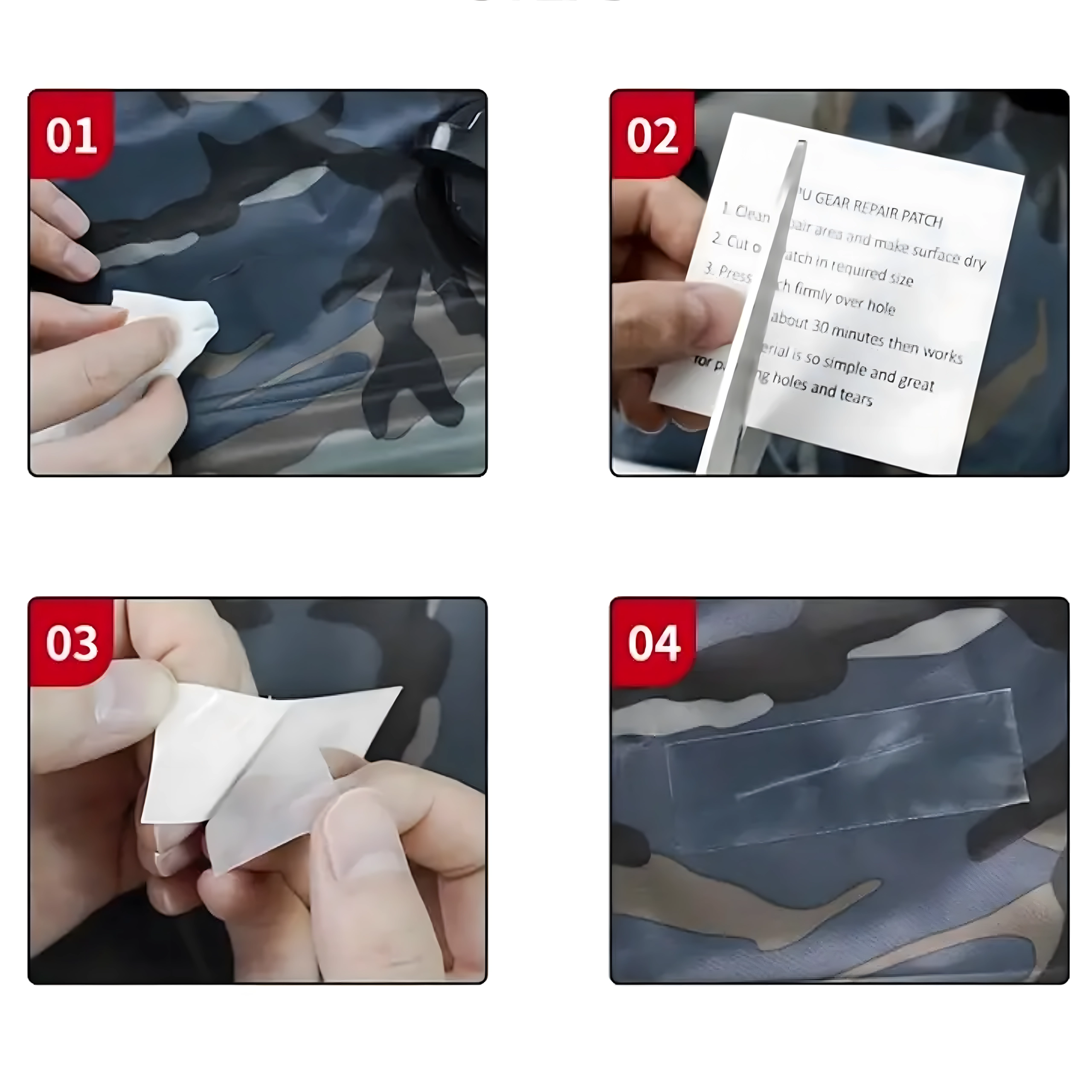 Peticele sunt rezistente la apă și aderă chiar și pe ploaie sau la umiditate ridicată, fiind potrivite pentru corturi și echipamente outdoor.