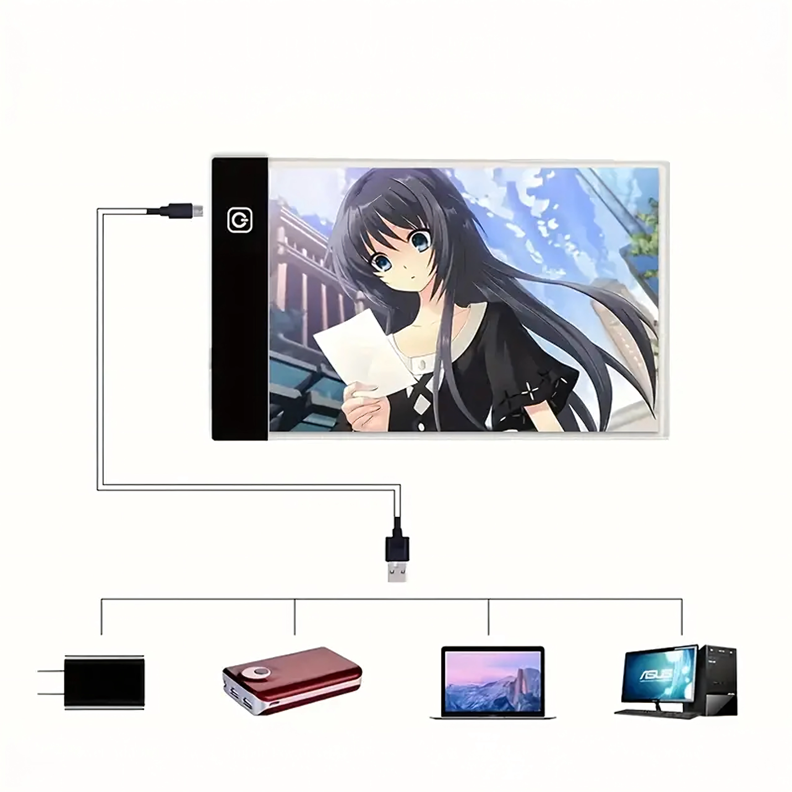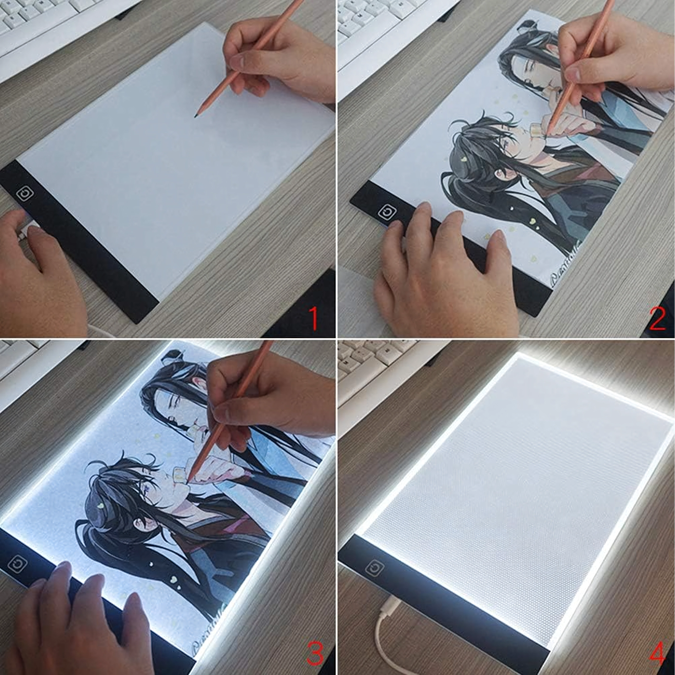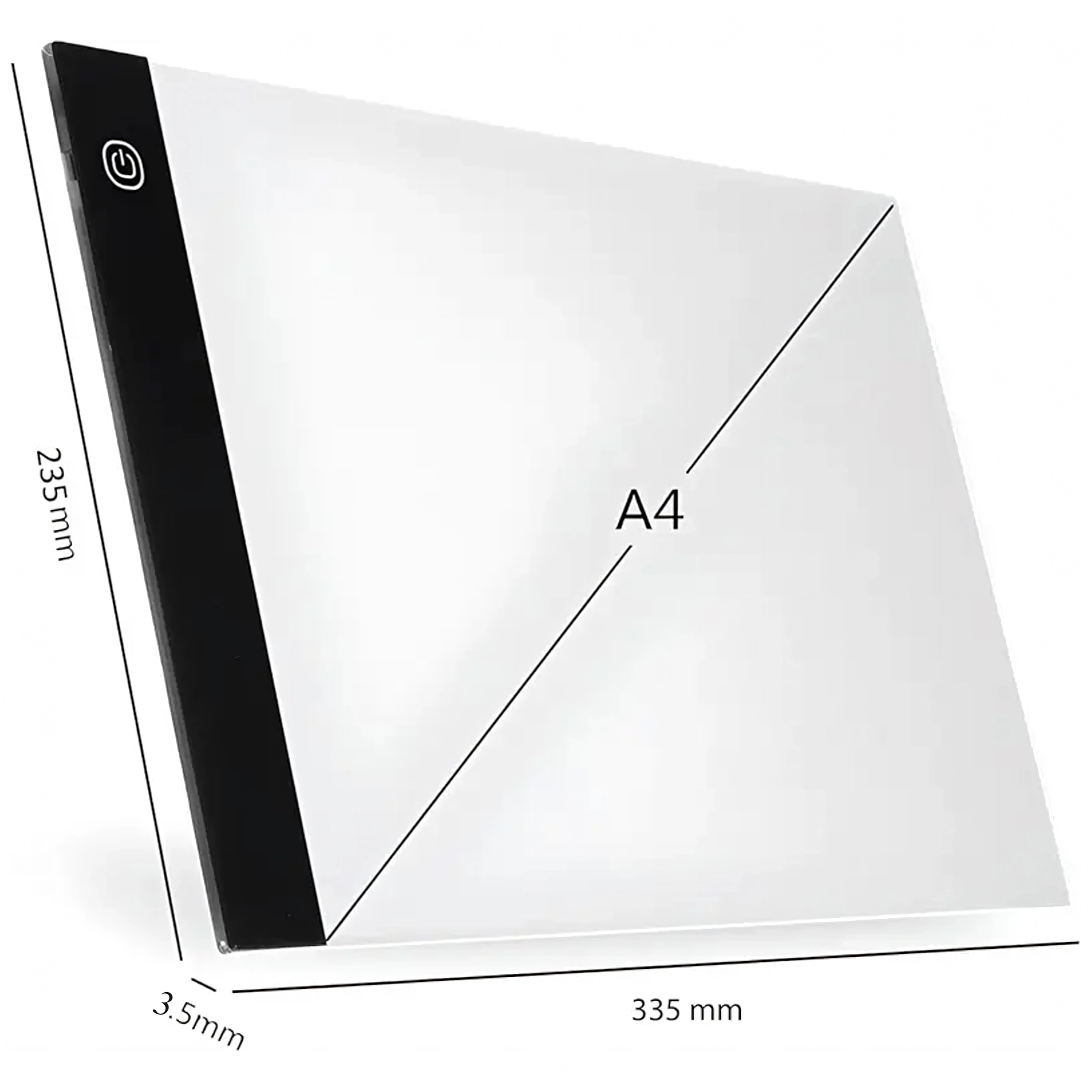 Această planșetă luminoasă LED A4, subțire și portabilă, ușurează munca creativă de zi cu zi. Datorită iluminării uniforme, liniile se văd clar prin hârtie, astfel încât copierea benzilor desenate, ilustrațiilor sau schițelor tehnice este rapidă și precisă. Controlul este simplu, prin buton tactil, iar alimentarea se face prin USB de la laptop, powerbank sau adaptor.