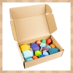 Cuburile din lemn în formă de pietre de la brandul Kruzzel susțin dezvoltarea naturală a copilului. Datorită gamei multicolore și dimensiunilor variate, copiii antrenează motricitatea fină, coordonarea mână–ochi și răbdarea. Lemnul rezistent este plăcut la atingere și potrivit pentru joaca de zi cu zi.
