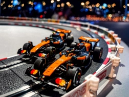 Bucură-te de curse realiste cu modelul de mașină pentru piste GO la scara 1:43. Replica vehiculului MCLAREN Formula 1 cu tema Lando Norris impresionează prin execuția precisă și proprietățile excelente de rulare. Datorită magnetului și ghidajului, menține perfect traiectoria, iar periuțele duble asigură contact fiabil chiar și în secțiunile dificile.