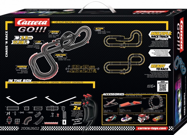 Stabilitatea și fluiditatea rulării sunt susținute de perii de contact duble și magnet în fiecare mașină. Pista se asamblează ușor datorită sistemului practic de cleme și suporturilor cu înălțime reglabilă. Contorul mecanic de tururi te ajută să ții evidența cursei, iar parapetele și șinele de ghidare sporesc siguranța. Setul este ideal pentru începători și avansați și este compatibil cu gama largă de accesorii CARRERA GO.