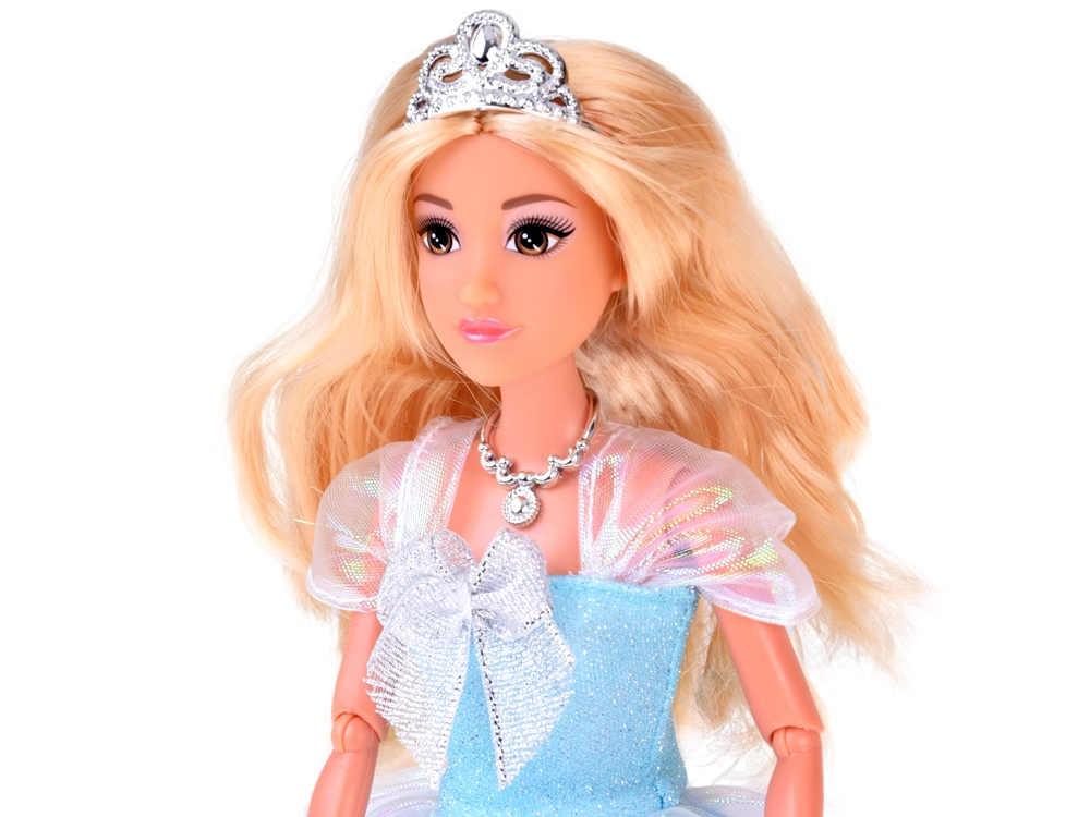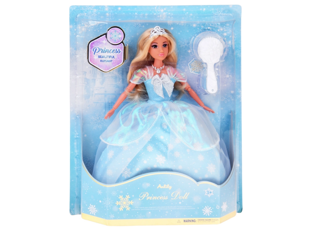 Trăiți o poveste de iarnă cu păpușa Anlily, care strălucește într-o rochie albastră sclipitoare cu fulgi, fuste ușoare în straturi și tiară argintie. Părul blond lung este ideal pentru pieptănat, împletit cozi și pentru a crea coafuri de bal. Brațele mobile facilitează poziționarea stilată și redarea scenelor din viața regală.