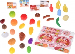 Setul include fructe, legume, produse de panificație, mezeluri, băuturi și cutiuțe. Formele și culorile realiste susțin învățarea și imaginația.