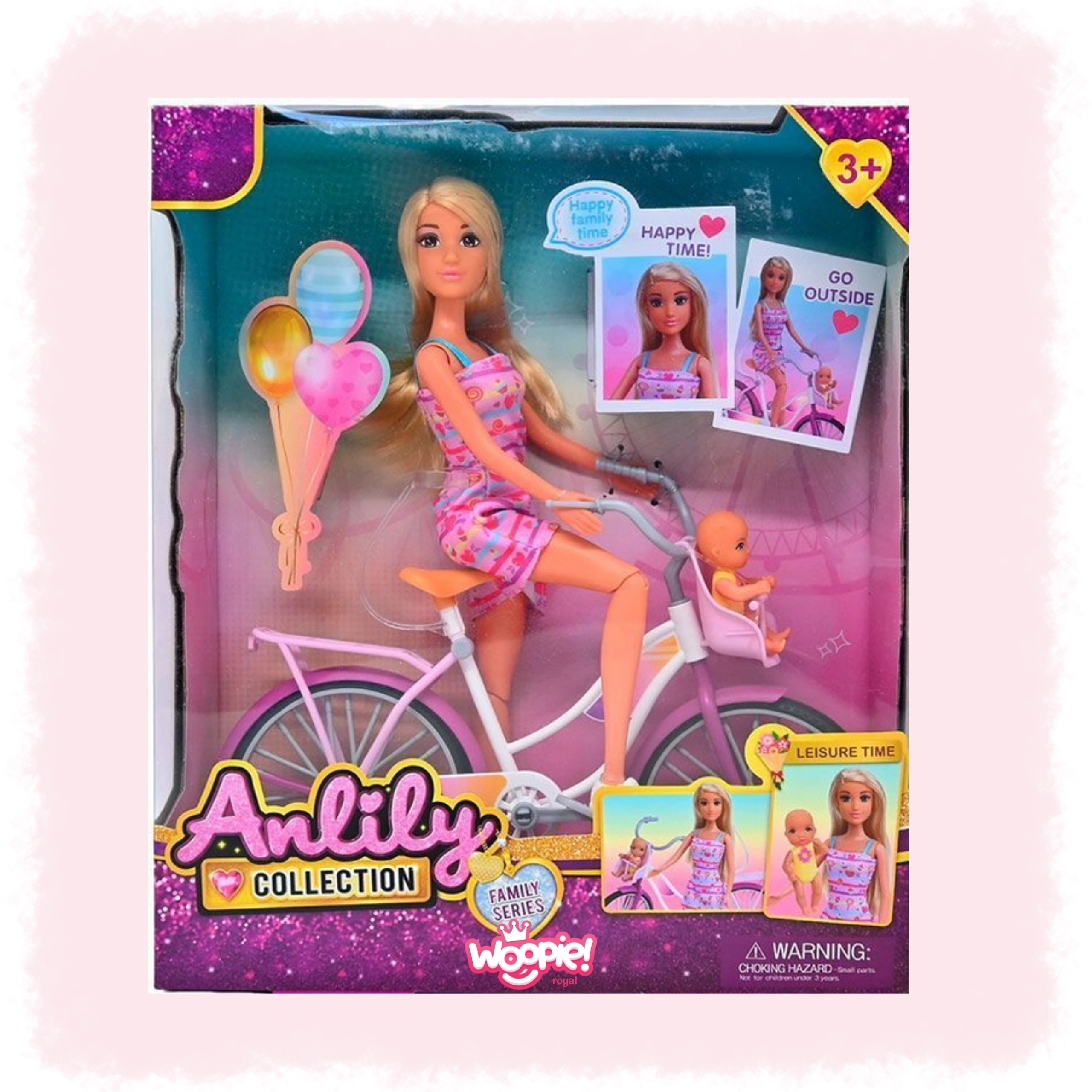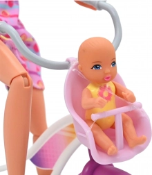 Setul cu păpușa‑mămică, bebelușul și bicicleta elegantă de oraș este o alegere excelentă pentru micii iubitori ai jocurilor de rol. Păpușa, cu păr lung ce poate fi pieptănat, are membre mobile, bebelușul este gata de îngrijire, iar bicicleta este echipată cu scaun pentru copii pentru plimbări împreună. Execuția de calitate, sigură, cu margini rotunjite, asigură un joc confortabil și în siguranță.