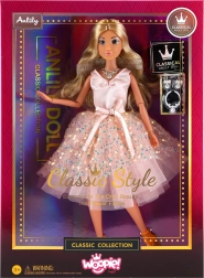 Păpușa Lily aduce farmecul eleganței de bal în camera copilului. Datorită părului lung auriu, invită la coafuri nesfârșite, în timp ce rochia roz cu tul fin și decorațiuni creează un aspect fermecător. Execuția de calitate, cu atenție la detalii, asigură durabilitate chiar și în joaca de zi cu zi.