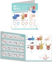 Setul conține un iepuraș, un ursuleț și un căprior din fetru moale. Copiii își asamblează singuri, decorează și înșiră propriile bijuterii cu mărgele.