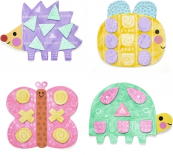 Arici, albinuță, fluture și țestoasă – motive colorate care stimulează imaginația și învățarea culorilor și formelor.