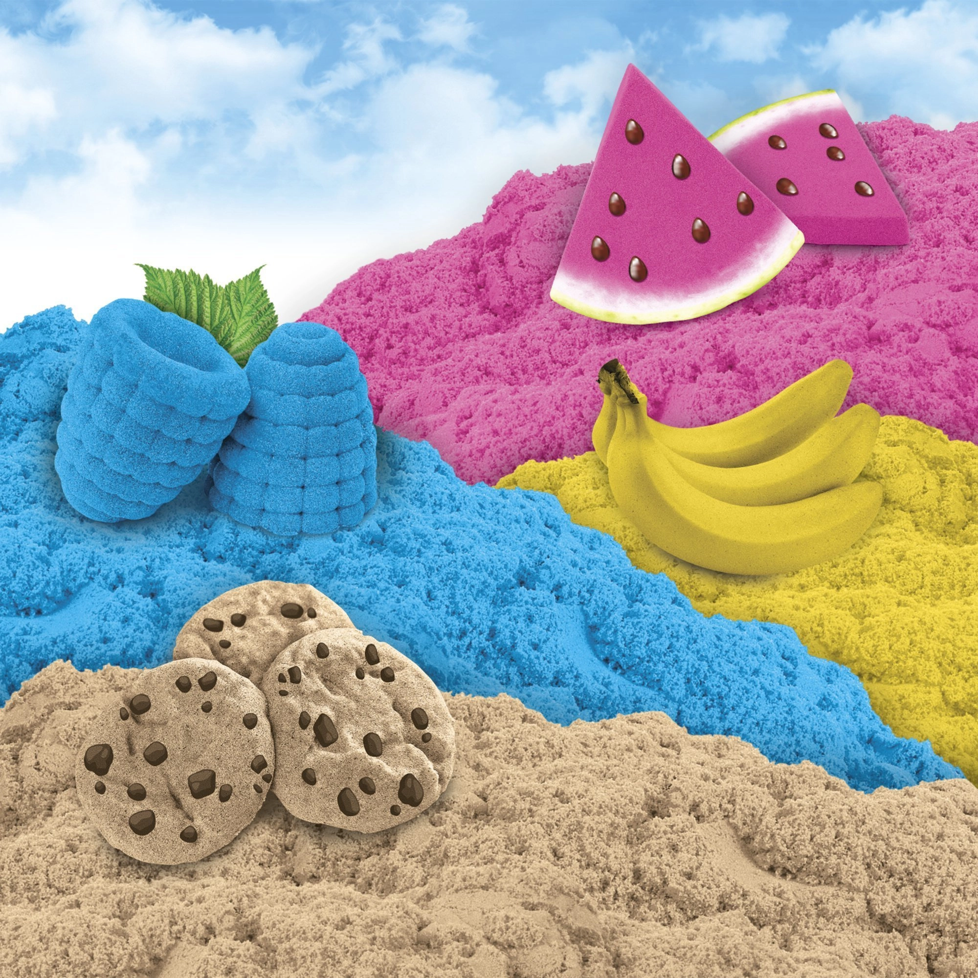 Descoperă magia nisipului kinetic parfumat cu un miros intens de pepene suculent. KINETIC SAND este alcătuit din nisip natural și un liant special care face ca granulele să se atragă ușor, nu face praf și nu se fărâmițează în dezordine. Copiii pot modela litere, construi castele, forma „brioșe” sau crea propriile forme – iar și iar.
