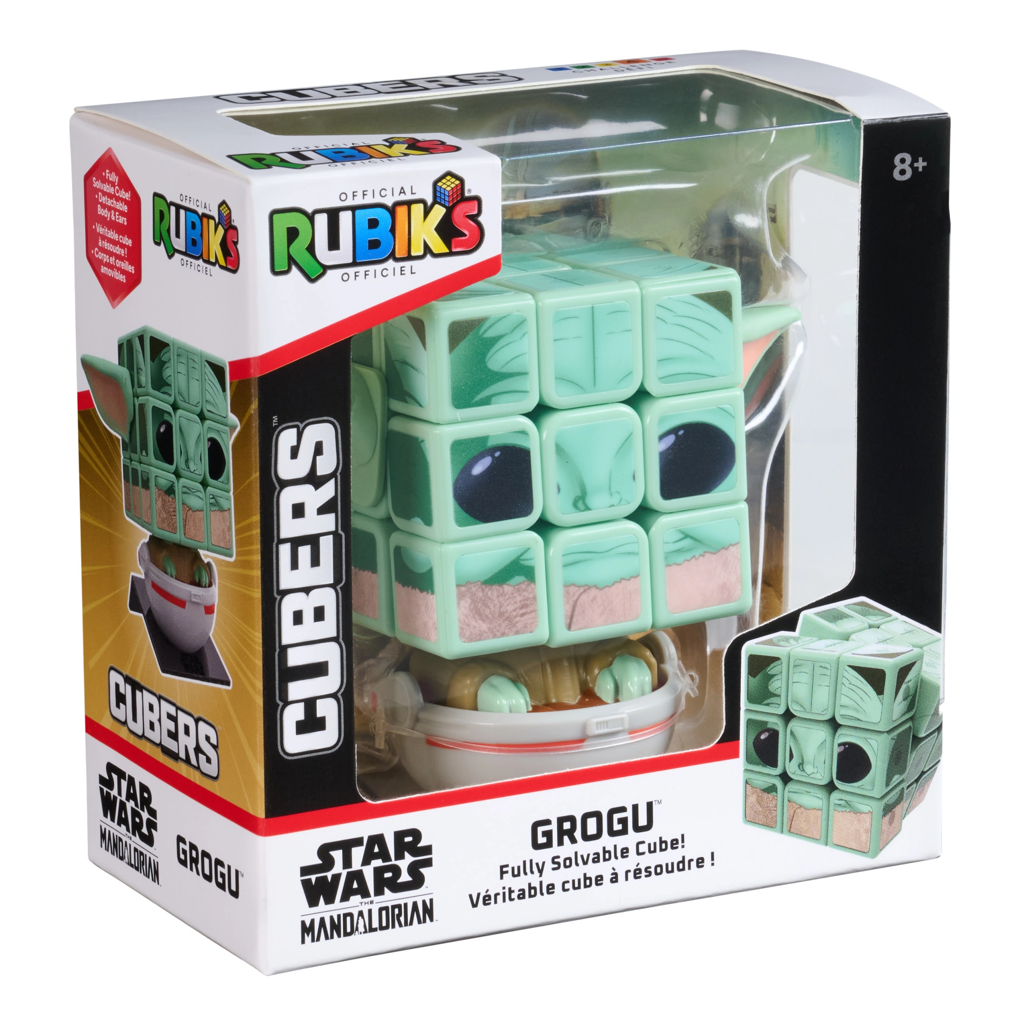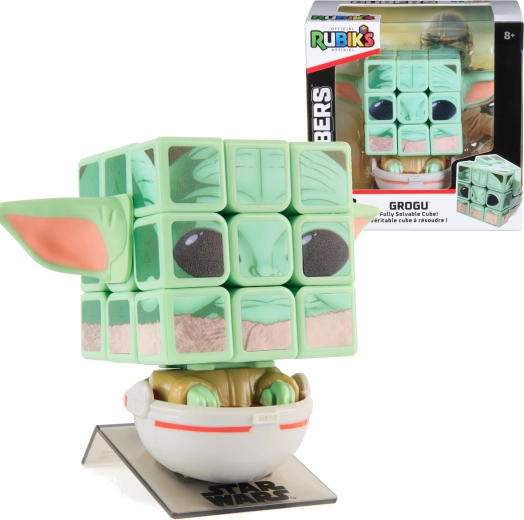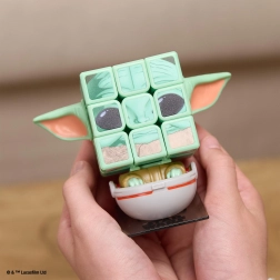 Descoperă îmbinarea originală dintre puzzle și figurină de colecție. Cubul Rubik 3x3 cu motiv GROGU aduce bucuria rezolvării și un aspect atrăgător pe raft. După aranjarea pieselor, pe fața frontală se formează imaginea îndrăgitului personaj Grogu, iar piesele incluse îți permit să transformi cubul într-o figurină decorativă cu suport.