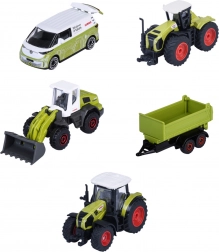 Pachetul include tractoare, încărcător, remorcă și dubă VW, care permit crearea propriilor scenarii de lucru pe câmp, încărcare, transport și recoltare. Componentele metalice cresc durabilitatea, iar părțile mobile și roțile care se rotesc liber asigură mișcare lină și o experiență de joc autentică.