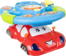 Volanul redă melodii, sunete de mașină și semnalizare, oferind copiilor senzația unei conduite reale și stimulând percepția senzorială.