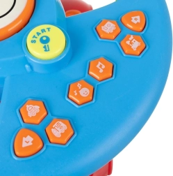 Volanul este modelat ergonomic pentru mâinile copiilor, oferă mânere texturate pentru o prindere sigură și butoane ușor de folosit. Este realizat din plastice sigure și de calitate și este o alegere excelentă ca cadou educațional, care îmbină distracția cu dezvoltarea abilităților.
