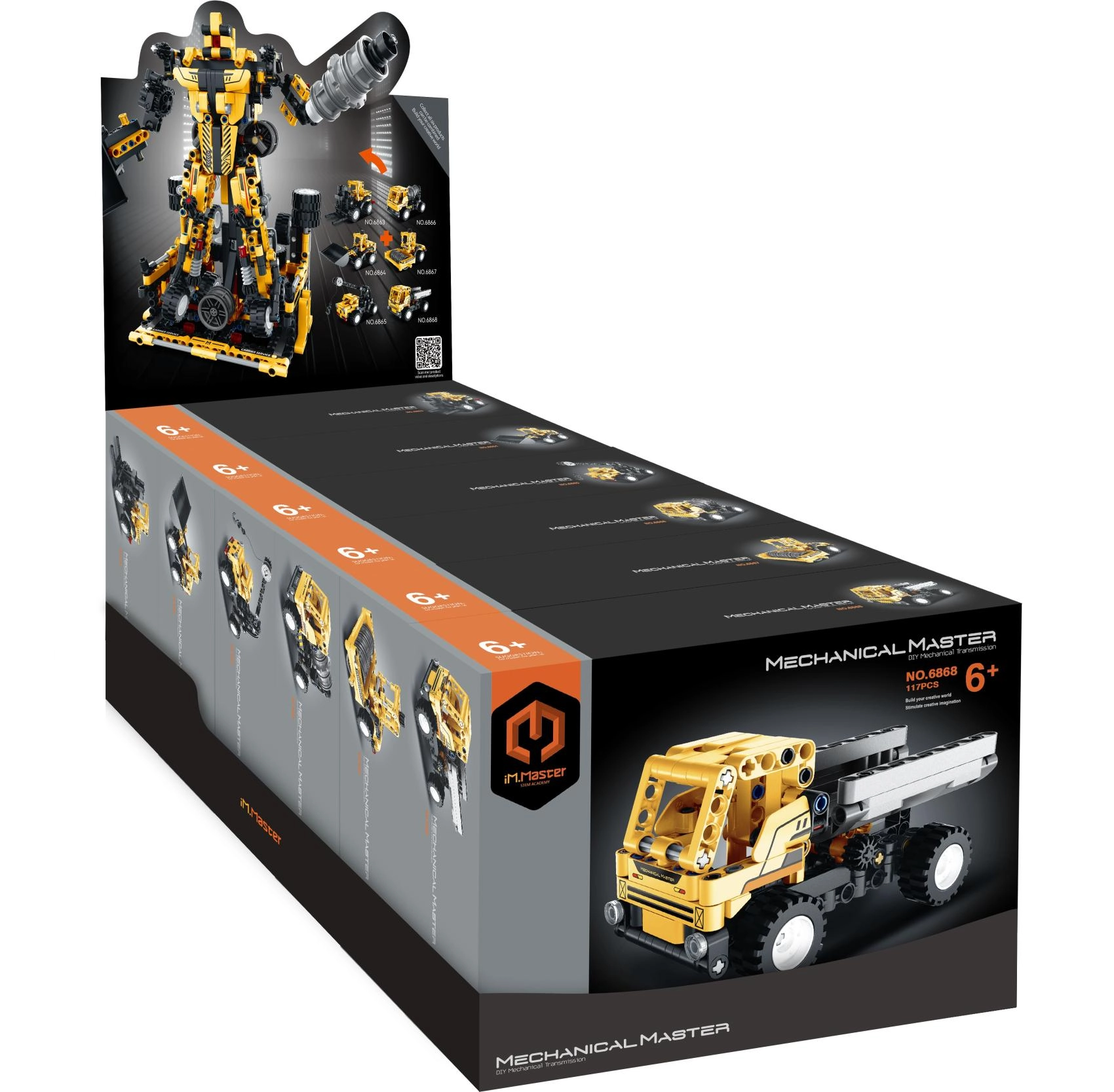 Colecționează toate cele șase utilaje și, conform instrucțiunilor, combină-le într-un robot mare – mai multe posibilități de construcție, mai multă distracție și învățare într-un singur set.