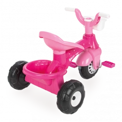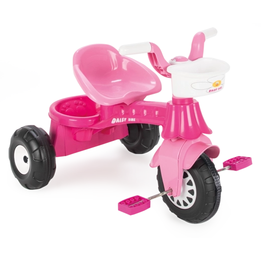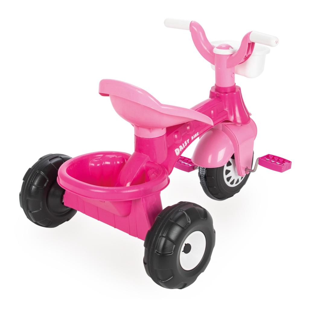 O tricicletă drăguță pentru copii, de culoare roz, cu motivul margaretei DAISY, care va încânta micii cicliști de la aproximativ 3 ani. Construcție ușoară și solidă, roți din plastic robuste pentru o deplasare stabilă și două coșulețe pentru jucării, făcând-o alegerea ideală pentru primele plimbări. Sarcină maximă până la 35 kg.