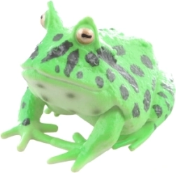 Forma detaliată, culoarea verde cu pete negre și pielea texturată apropie de aspectul unei broaște reale și stimulează imaginația copiilor.
