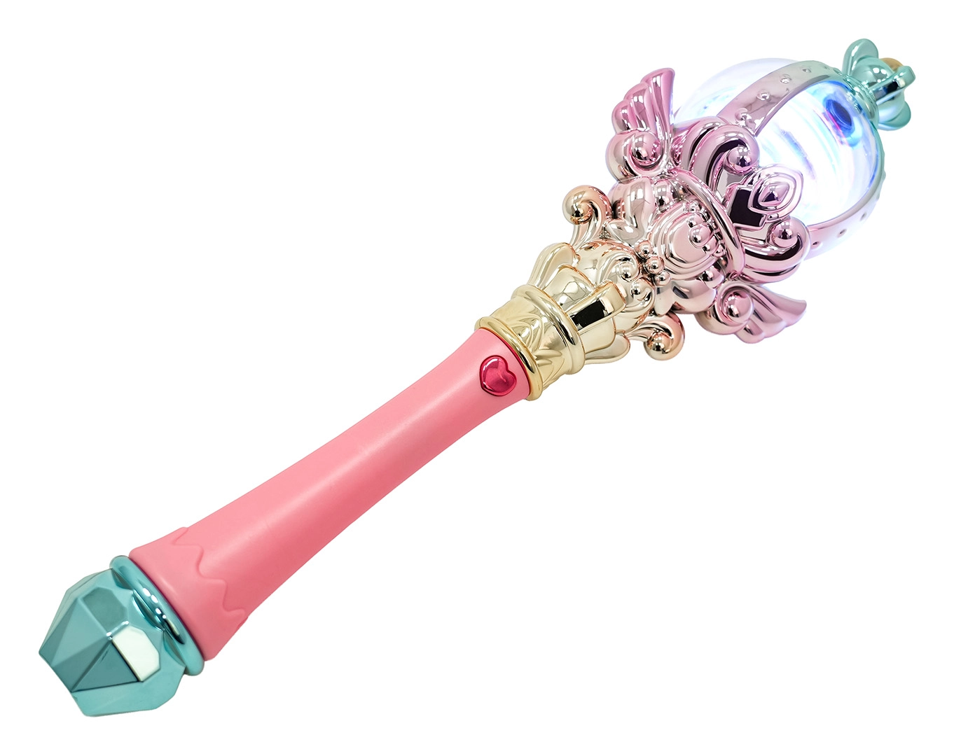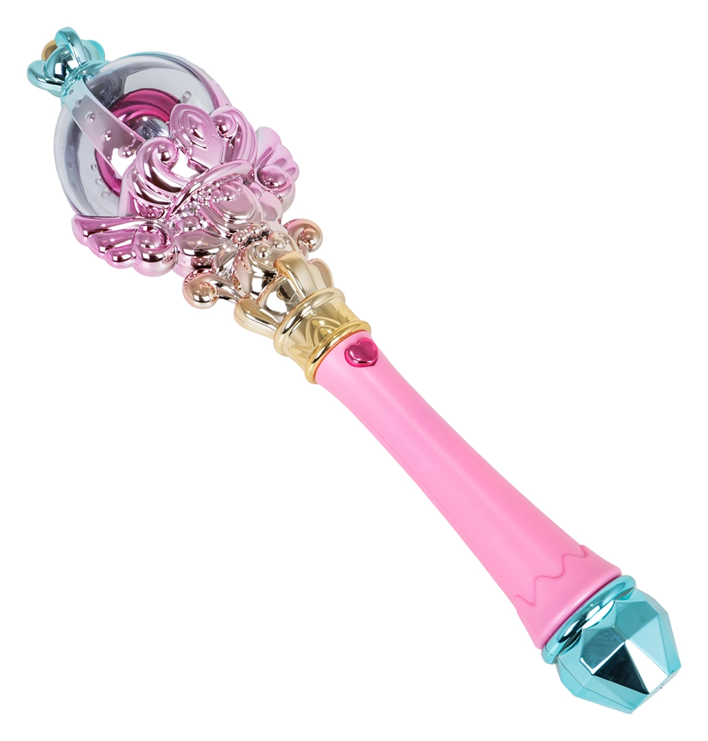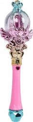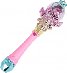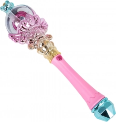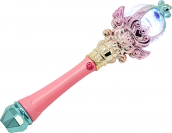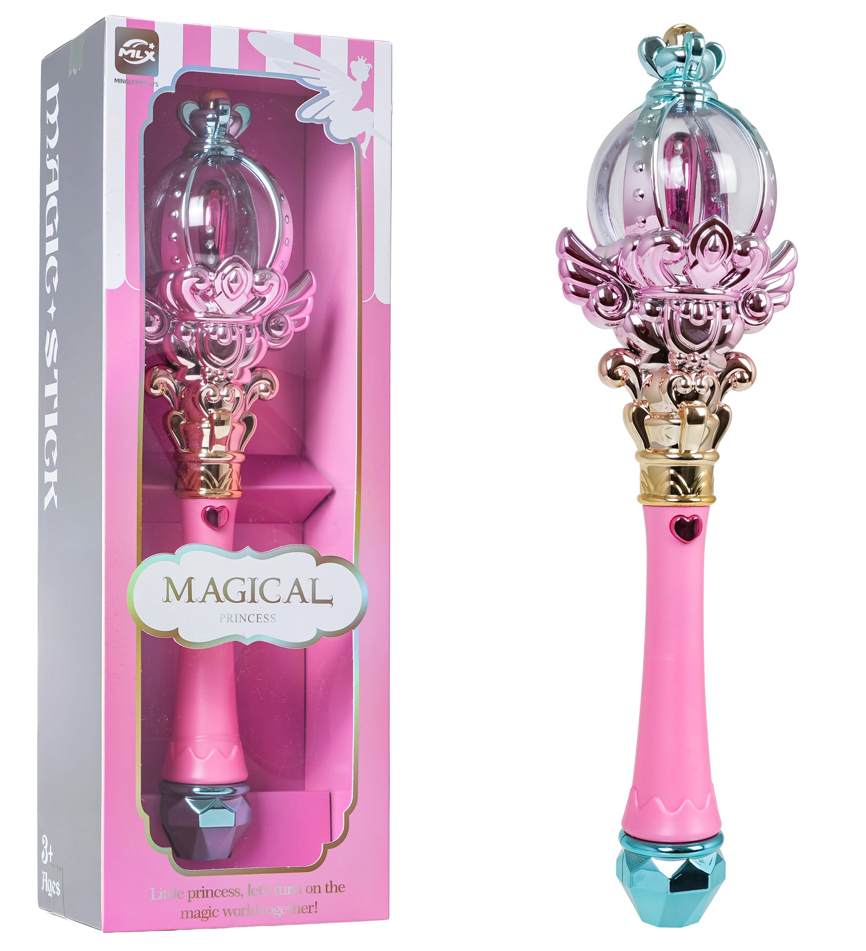 Această baghetă magică interactivă transformă orice joacă într-o aventură de basm. Domul translucid și detaliile cristaline se aprind în verde, albastru și roșu, în timp ce butonul de pe mâner pornește sunete și melodii magice. Ideală pentru jocuri de prințese, zâne sau vrăjitori.