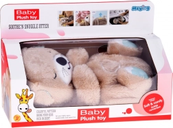 Liniștește-ți bebelușul cu o vidră pufoasă care „respiră” ușor, luminează pe burtică și redă melodii, bătăi de inimă și zgomot alb. Această jucărie interactivă din pluș oferă o senzație de siguranță și ajută copiii să adoarmă mai repede datorită mișcării ritmice a burticii, luminii difuze și a până la 8 sunete liniștitoare. Mecanismul se scoate ușor, iar plușul poate fi spălat la mașină.