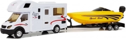 Această rulotă stilată cu barcă cu motor galbenă este ideală pentru micii șoferi și iubitorii de apă. Datorită mecanismului cu inerție este suficient să tragi vehiculul ușor înapoi și să-i dai drumul – înaintează singur. Detaliile realiste precum scaunele și volanul stimulează imaginația și dezvoltă abilitatea de a spune povești.