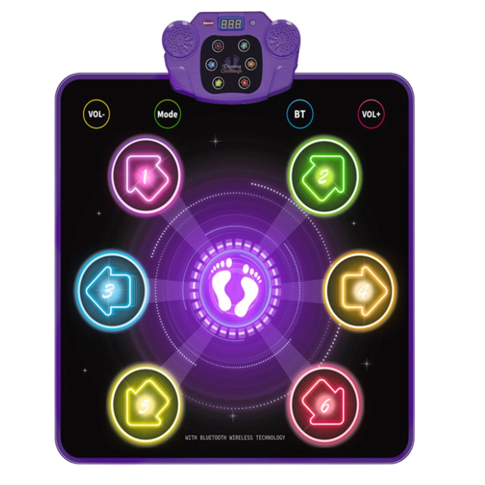 Salteaua de dans interactivă pentru copii îmbină mișcarea, muzica și învățarea într-un singur produs. Datorită conexiunii Bluetooth redați melodiile preferate de pe smartphone, 5 moduri de joc adaptează dificultatea vârstei copilului, iar efectele LED cu 6 săgeți direcționale transformă dansul într-o provocare distractivă. Funcționarea în siguranță este asigurată de un suprafață moale, antiderapantă și rezistentă la apă și de funcții practice precum reglarea volumului, mute și modul de repaus.