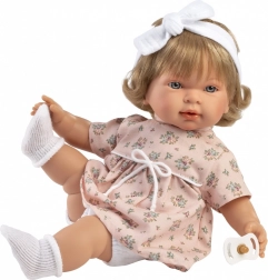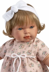 Păpușa care plânge drăgălașă Carla 42 cm încântă prin aspectul realist, corpul moale și munca manuală de calitate din Spania. Are membre și cap din vinil, poartă haine în patru piese, iar după îndepărtarea suziței plânge, ceea ce susține îngrijirea, empatia și imitația în timpul jocului.