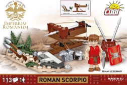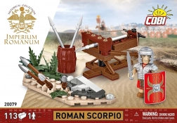 Descoperă puterea tehnicii antice. Scorpionul roman era o armă de asediu compactă și extrem de precisă, care lansa săgeți asemănătoare celor de arbaletă. Acest set redă fidel detaliile mașinii, completate de o mini scenografie cu baricade și un legionar cu scut Scutum, sabie Gladius, armură Lorica Segmentata și cască Galea.