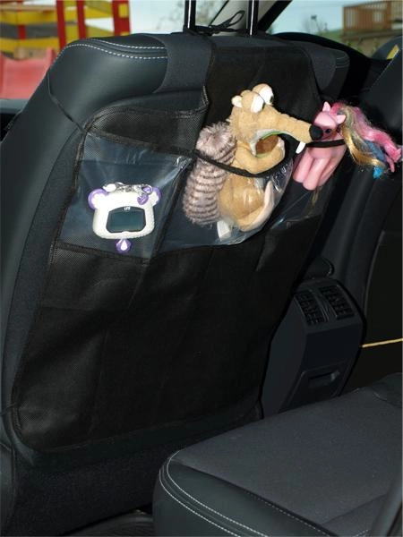 Faceți călătoriile cu copiii mai organizate și mai confortabile. Organizatorul auto pentru copii se fixează cu ajutorul șnurului în partea superioară și al benzii elastice în partea inferioară, astfel încât stă ferm pe spătarul scaunului din față și îl protejează de murdărie și urme de încălțăminte. Trei buzunare transparente, întărite permit găsirea rapidă a jucăriilor preferate, cărților, șervețelelor sau biberonului.