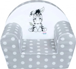 Un fotoliu stilat și confortabil pentru cei mai mici, cu imprimeu cu buline și o zebră simpatică, completează frumos camera copilului. Datorită umpluturii moi din spumă și husei plăcute din bumbac, oferă un loc sigur și comod pentru relaxare și joacă.