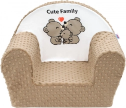 Fotoliul din minky, stilat și funcțional, de la brandul ceh NEW BABY va deveni locul preferat pentru odihnă, citit și joacă. Țesătura minky moale, cu bobițe caracteristice, susține stimularea senzomotorie și este plăcută la atingere. Imprimeul adorabil cu ursuleți Cute Family completează frumos interiorul camerei.
