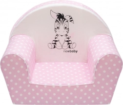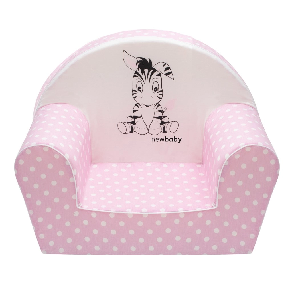 Fotoliu pentru copii drăguț și confortabil NEW BABY Zebra în culoare roz deschis, ideal ca accesoriu pentru camera copilului. Este fabricat din material moale pentru confortul celor mici și are husă din bumbac detașabilă, ușor de spălat. Husa cu buline fine este decorată cu o zebră adorabilă, astfel încât copiii vor îndrăgi rapid fotoliul.