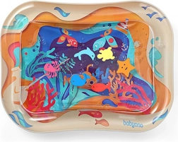 Tummy time pe suprafața moale cu apă întărește gâtul, spatele și burtica și dezvoltă echilibrul și coordonarea mână–ochi.