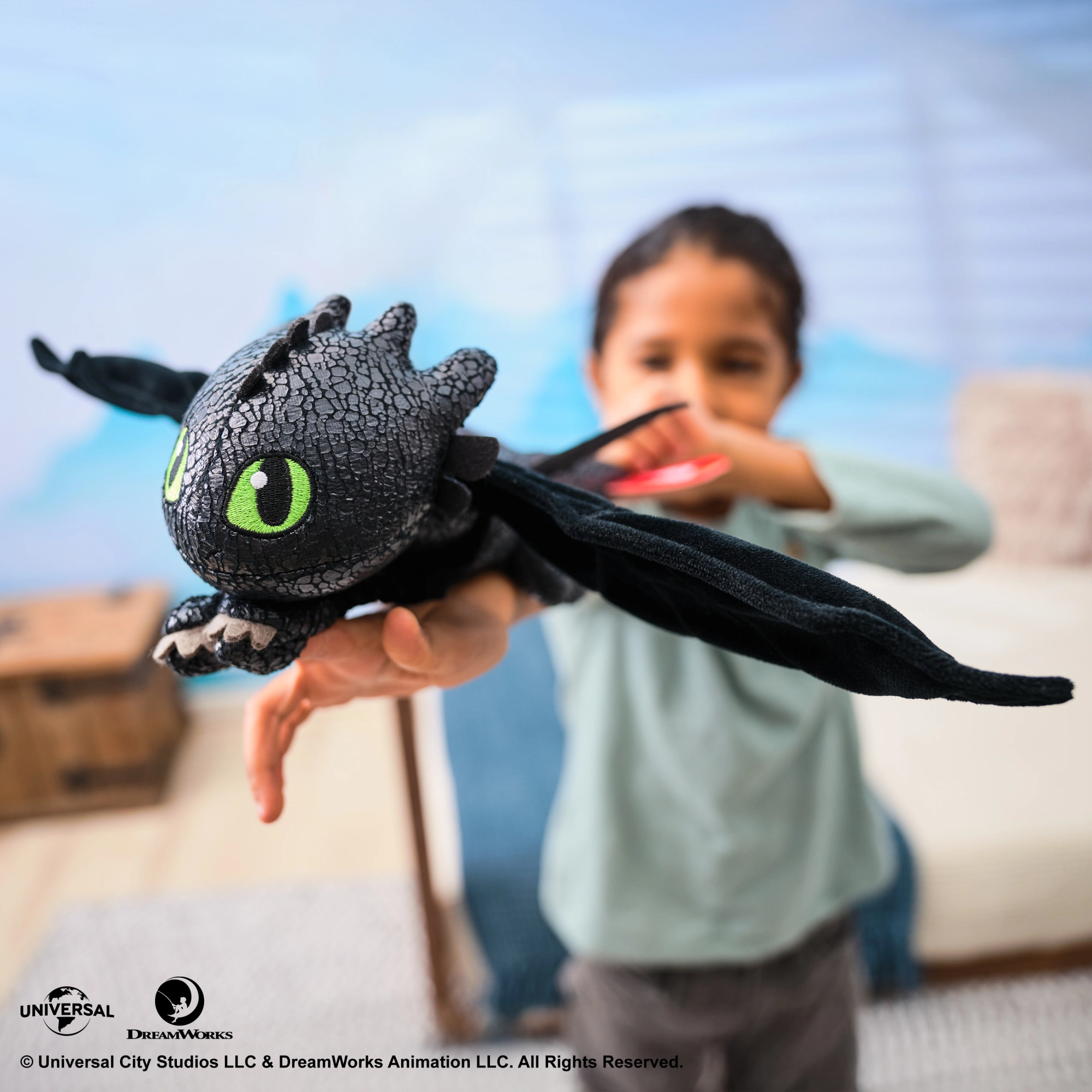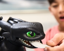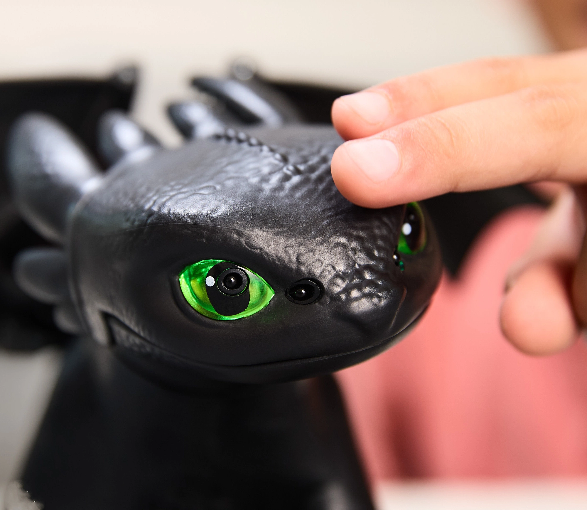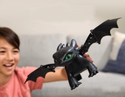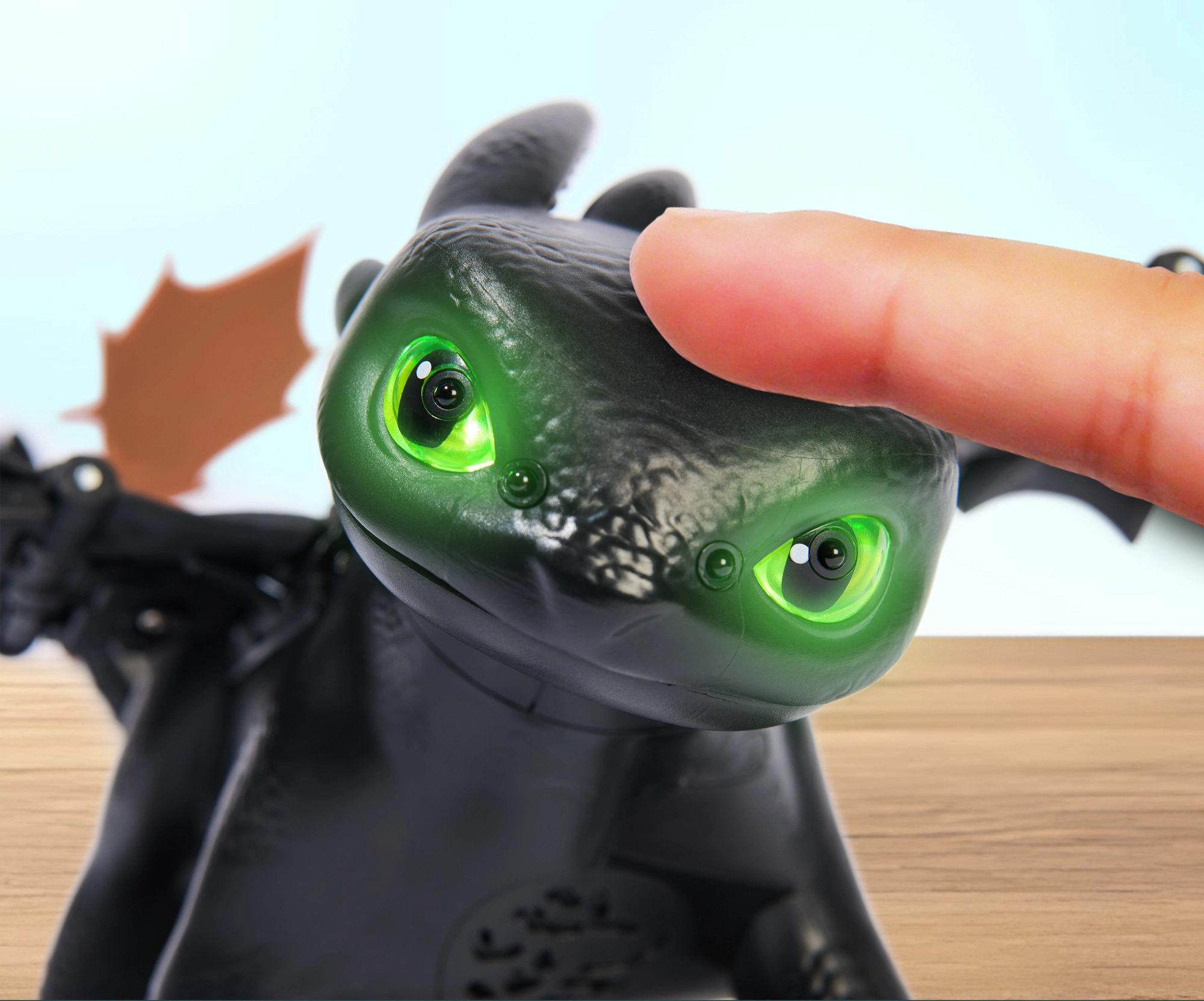 Figurina oferă 5 personalități unice și peste 60 de reacții sonore și luminoase. Deblochezi mini-jocuri precum „keep away” (urmărește peștișorul), „follow me” (urmează-mă) și „chicken”. La apogeul prieteniei, execută atacul plasmatic – ochii se aprind în albastru, iar anvergura aripilor de până la 51 cm umple spațiul. Ridică dragonul în aer și vei auzi sunete realiste de zbor – ideal pentru joacă creativă și recrearea scenelor din film.