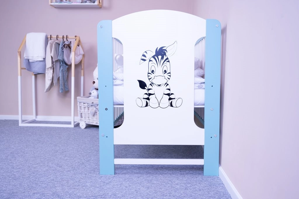Designul practic permite setarea somierei în 3 poziții (22/38/51 cm) și utilizarea celor trei bare detașabile pentru acces mai ușor la copil. Somiera cu lamele stabile și îmbinări lipite de calitate asigură rezistență și durabilitate. Motivul decorativ cu zebră conferă pătuțului un aspect jucăuș, care se potrivește perfect oricărei camere pentru copii.