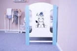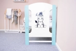 Panoul decorativ cu motiv de zebră face camera mai primitoare și încântă atât copiii, cât și părinții, fără a compromite siguranța și funcționalitatea.